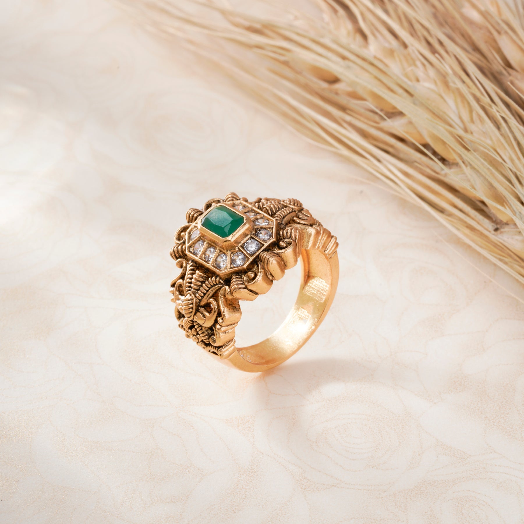 The Emvira Ring showcases a sophisticated blend of vibrant Emerald and sparkling Cubic Zirconia stones, expertly crafted to create a striking yet elegant look. This design balances the rich green hues of emerald with the brilliance of CZ accents, offering timeless beauty and refined style perfect for both everyday wear and special occasions.