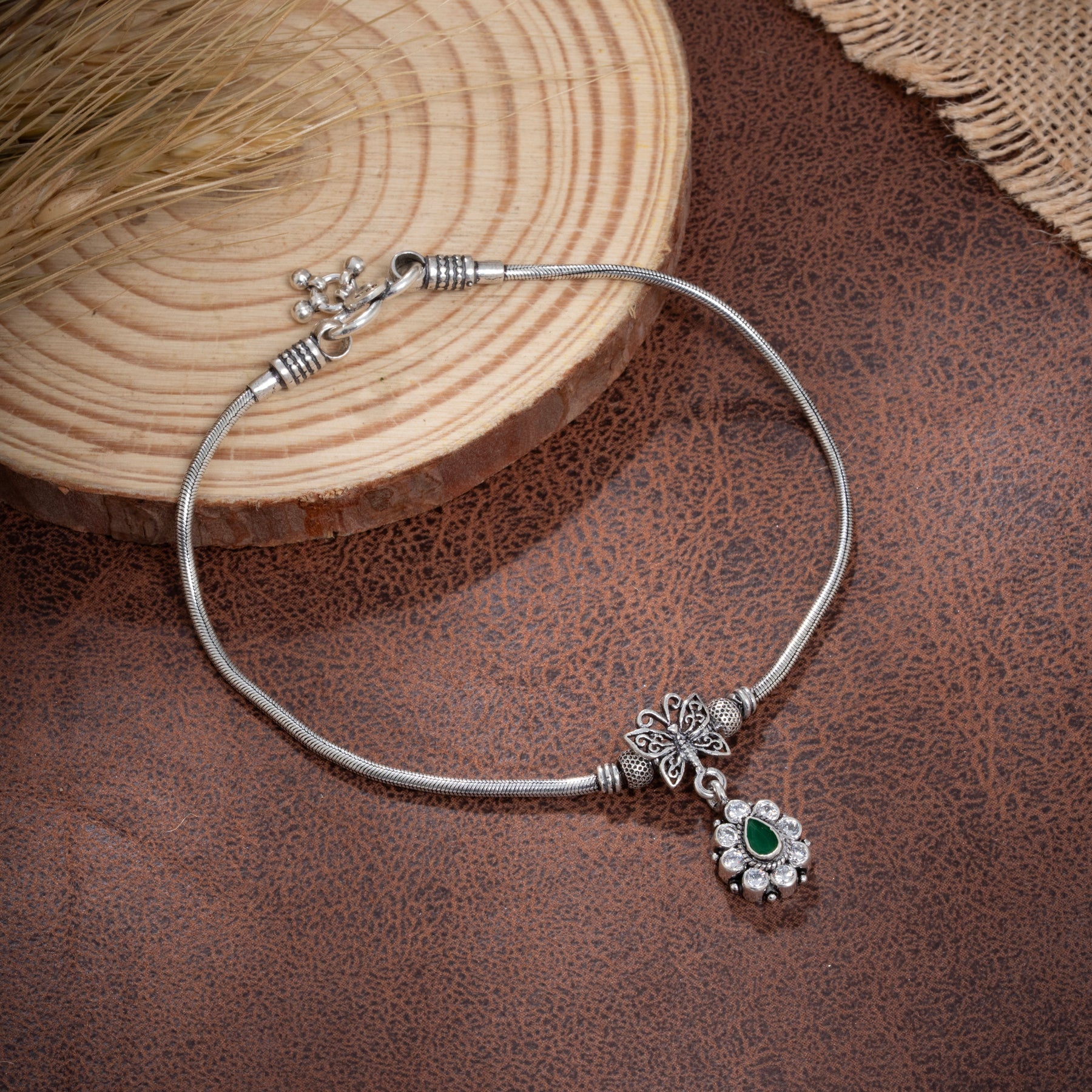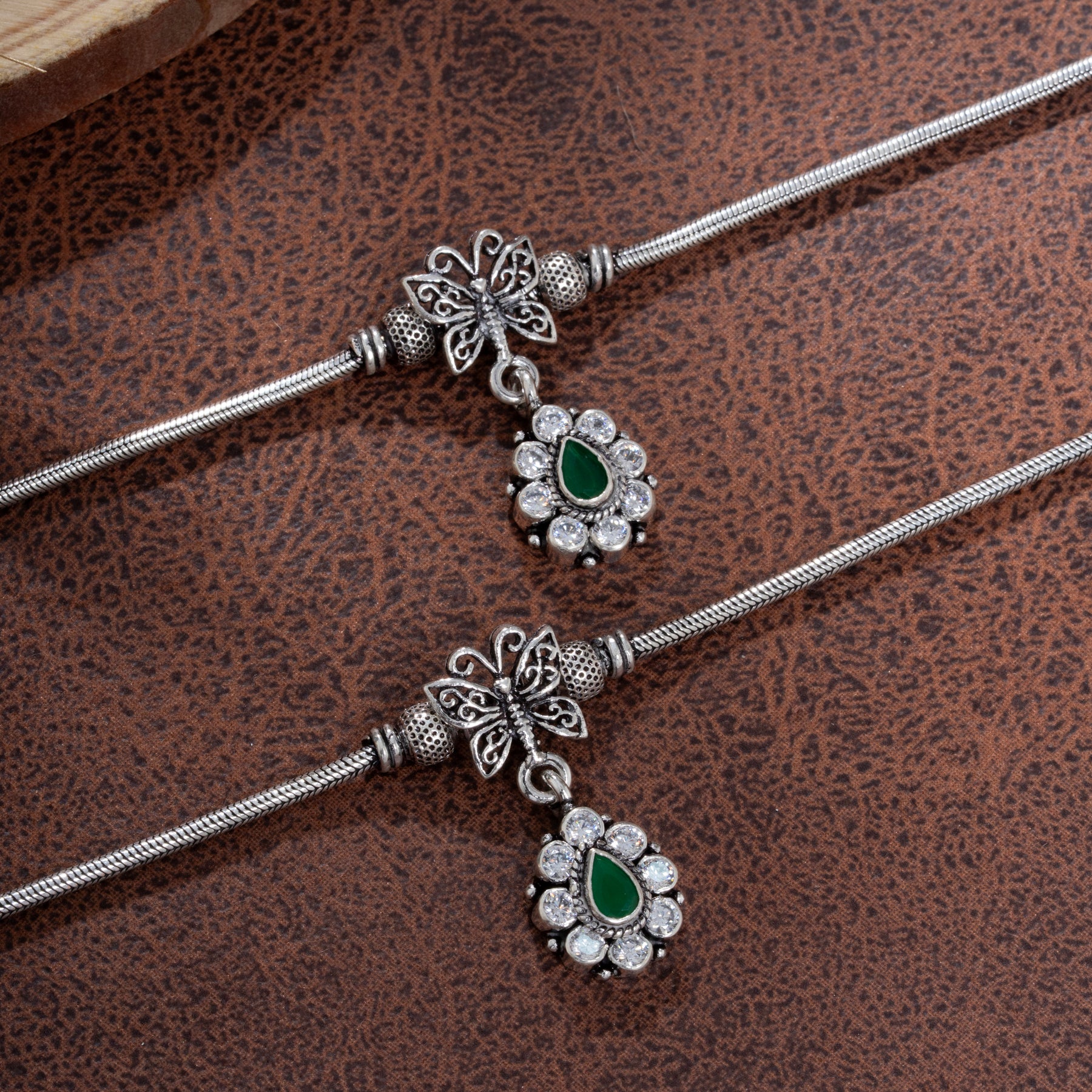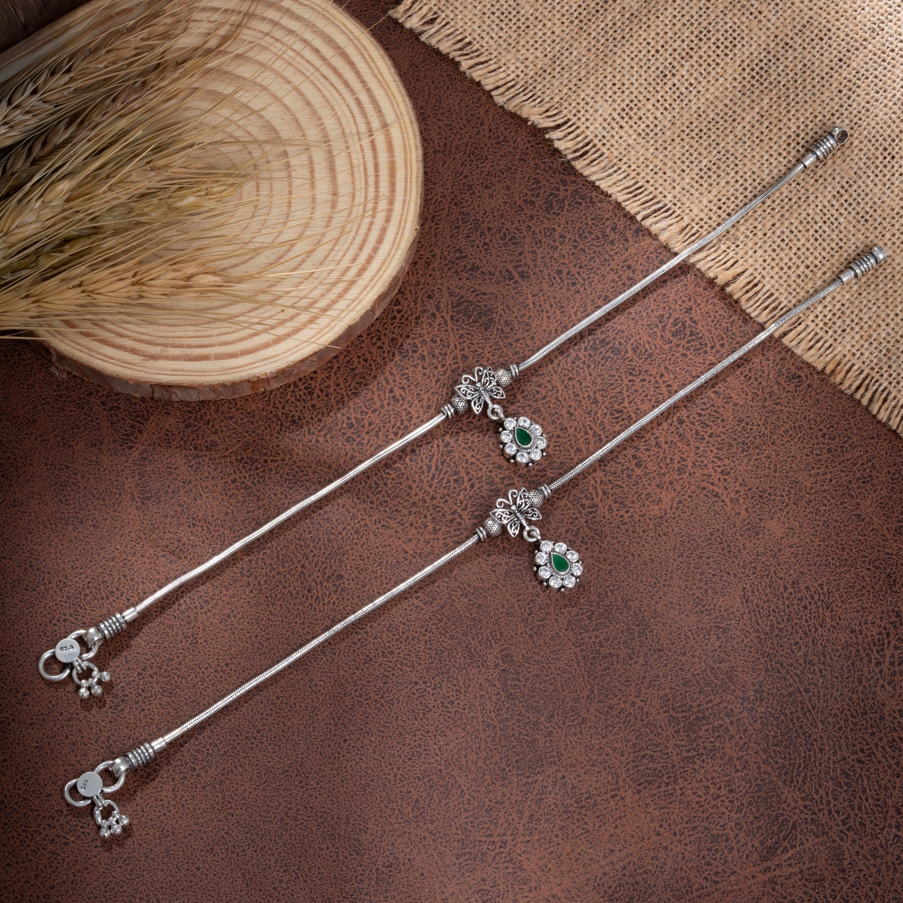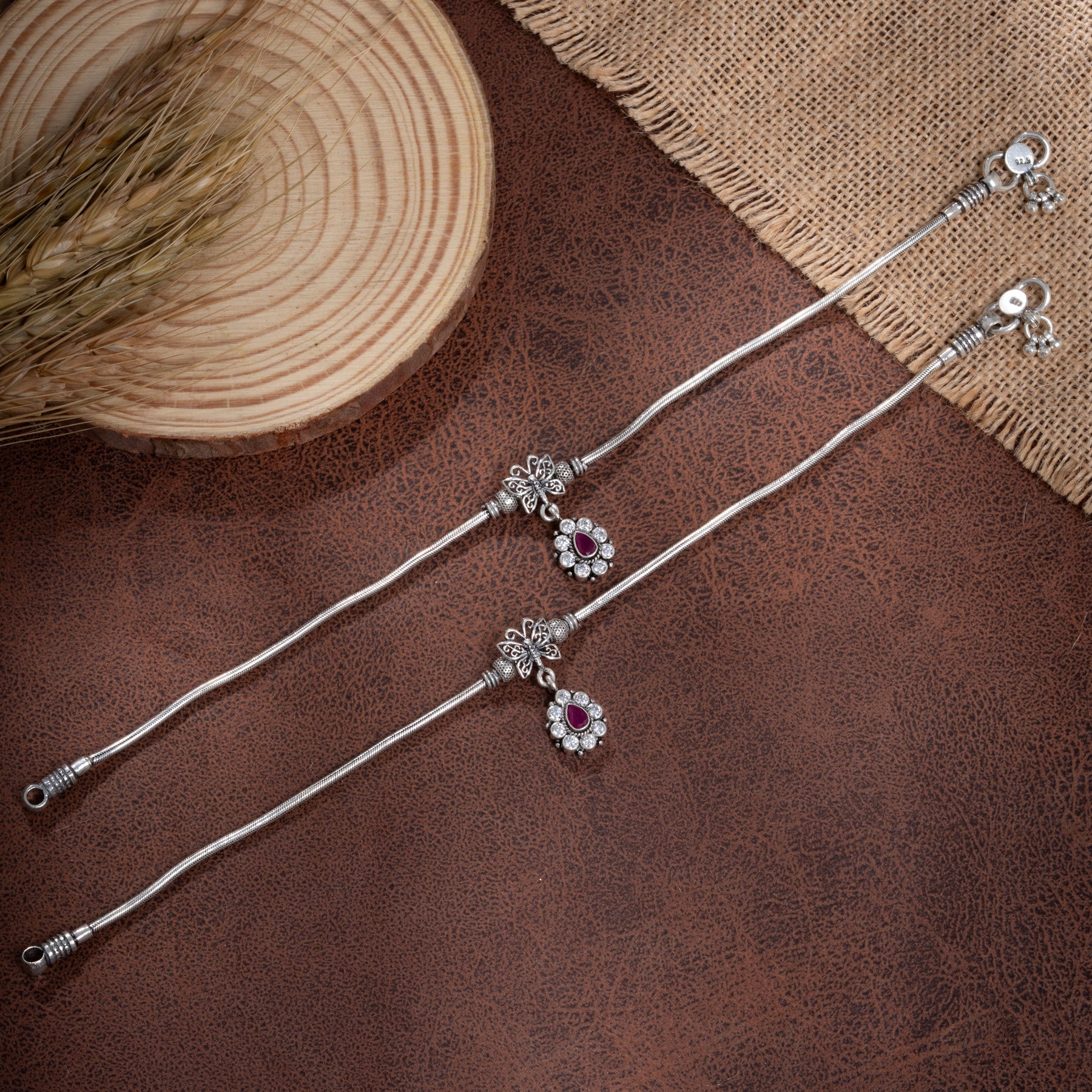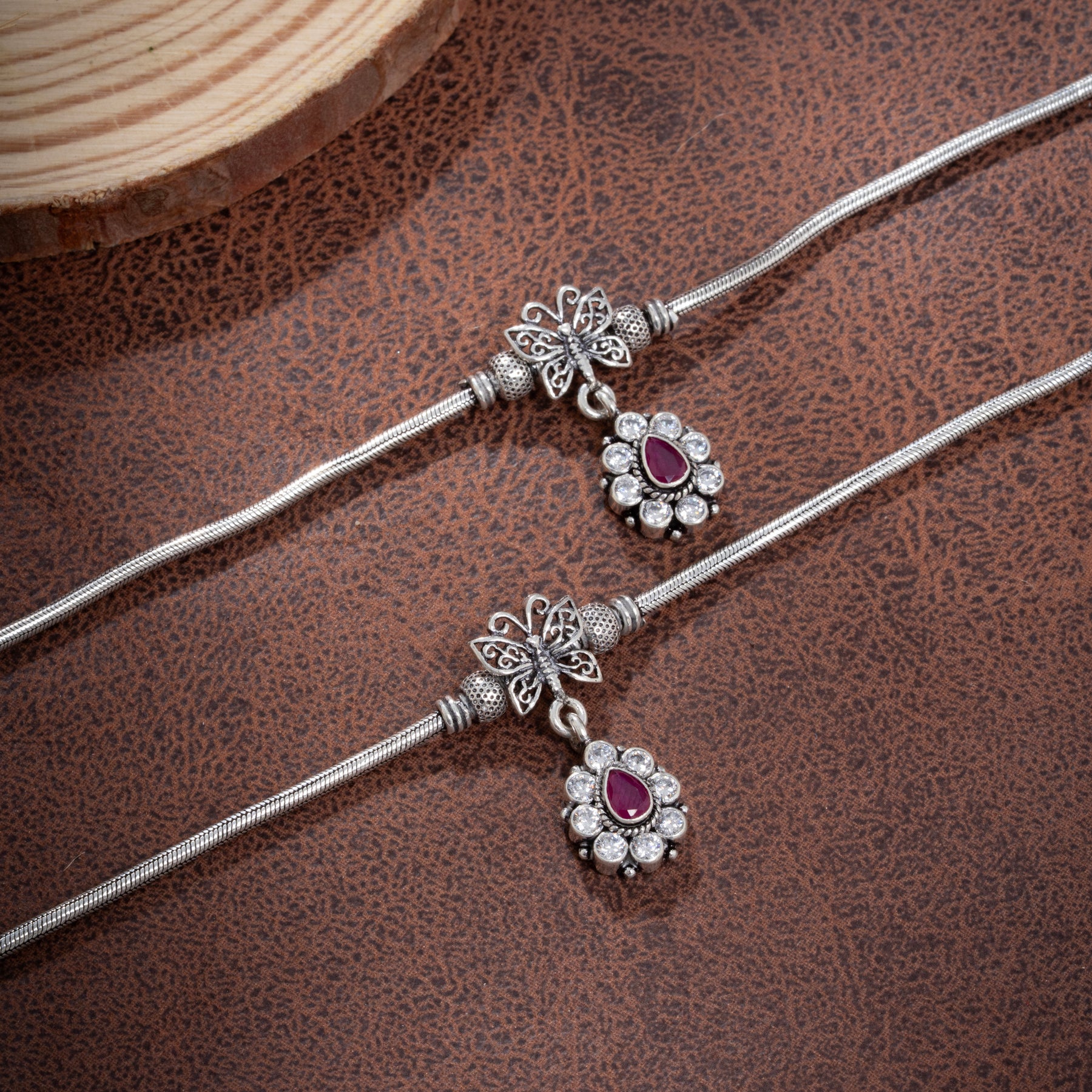 The Aaryushi Payal combines traditional elegance with contemporary design, featuring delicate Butterfly motifs paired with graceful Pear-shaped Floral elements. Adorned with brilliant Cubic Zirconia stones and rich Ruby accents, this piece delivers sophisticated sparkle and timeless charm. Perfect for adding a touch of refined beauty to your festive or everyday ensemble, the intricate craftsmanship ensures lasting appeal and comfort throughout wear.