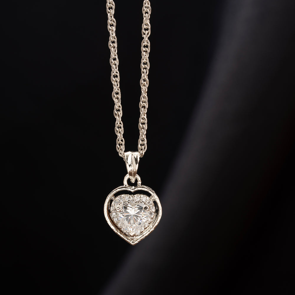 This stunning Crystelle Heart Pendant Set features a timeless Heart design adorned with sparkling Cubic Zirconia stones. Crafted with expert precision, this Pendant set exudes elegance and sophistication, making it the perfect accessory for any formal occasion. Elevate your style with this must-have piece.