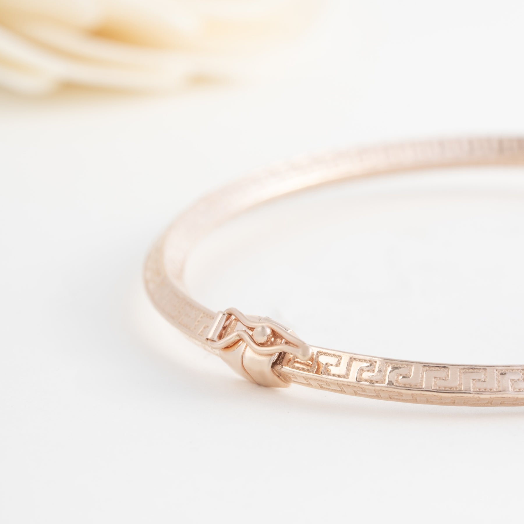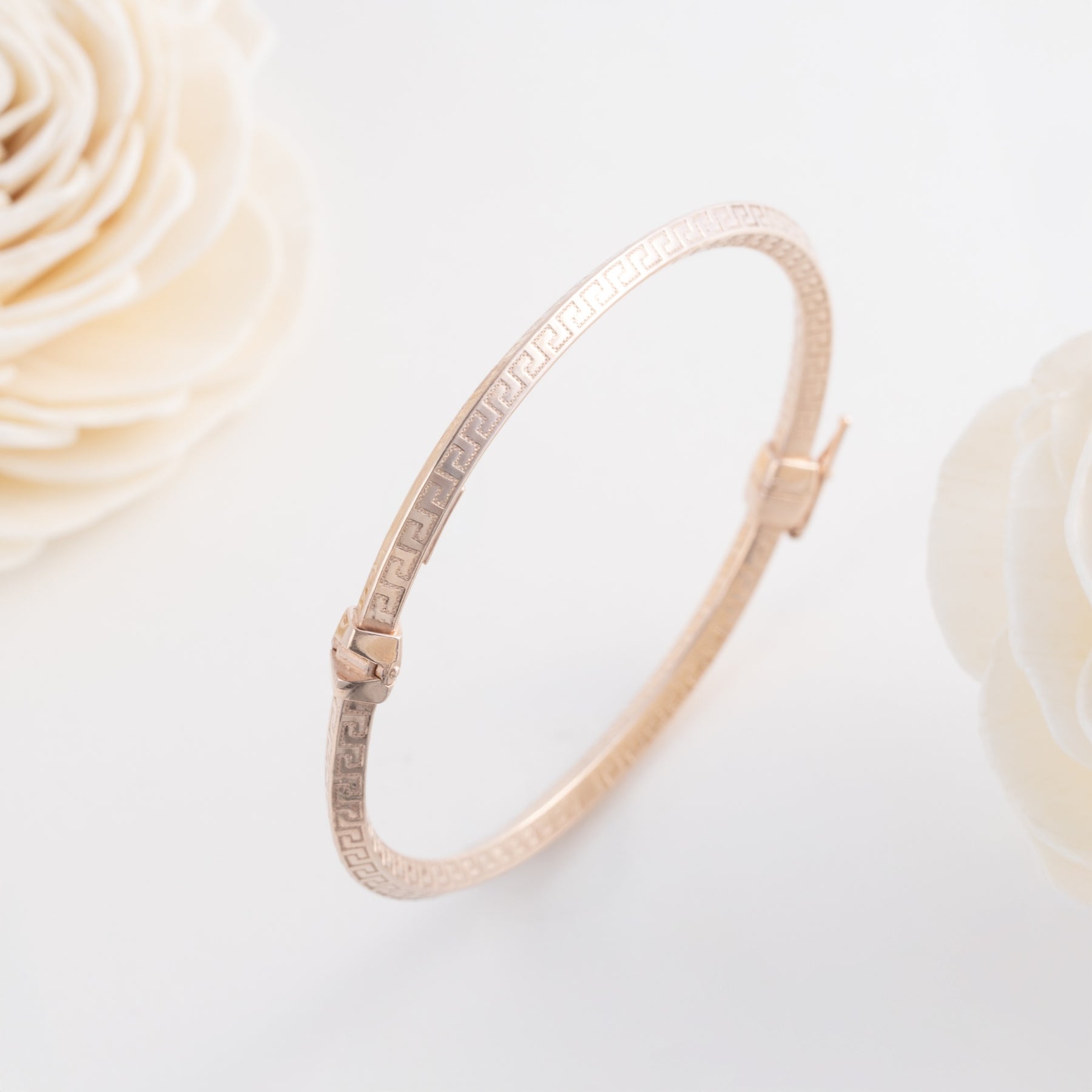 The Delphi Kada features a meticulously crafted Greek Key Pattern, symbolizing infinity and unity. This design elevates its timeless elegance, making it a sophisticated choice for those who appreciate classic artistry combined with modern craftsmanship. Perfect for adding a refined touch to any ensemble.