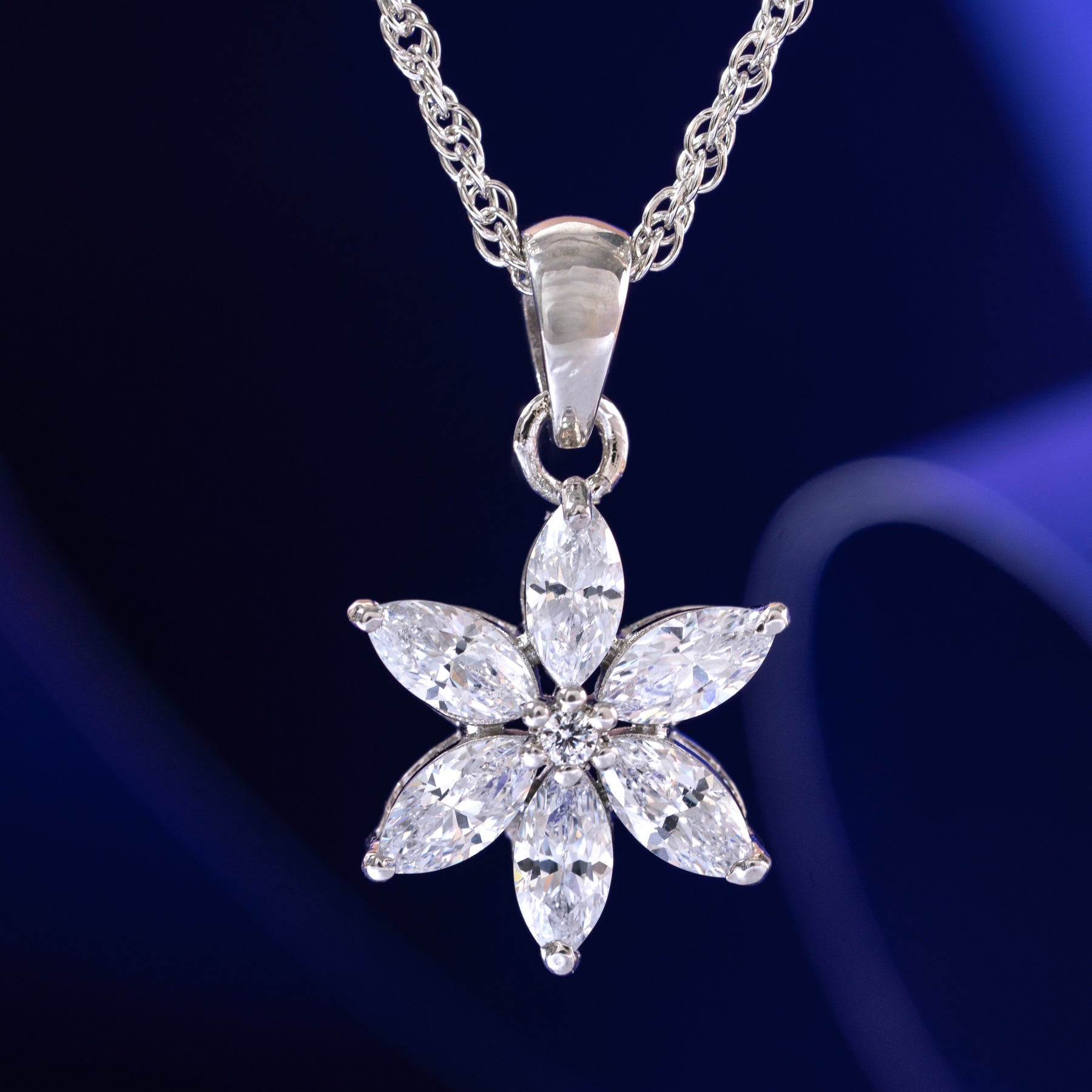 The Chérie Blossom Chain Pendant showcases a refined Floral embellished with Cubic Zirconia stones. This expertly designed piece combines delicate artistry with brilliant sparkle, offering a versatile accessory that enhances both casual and formal ensembles with understated elegance.