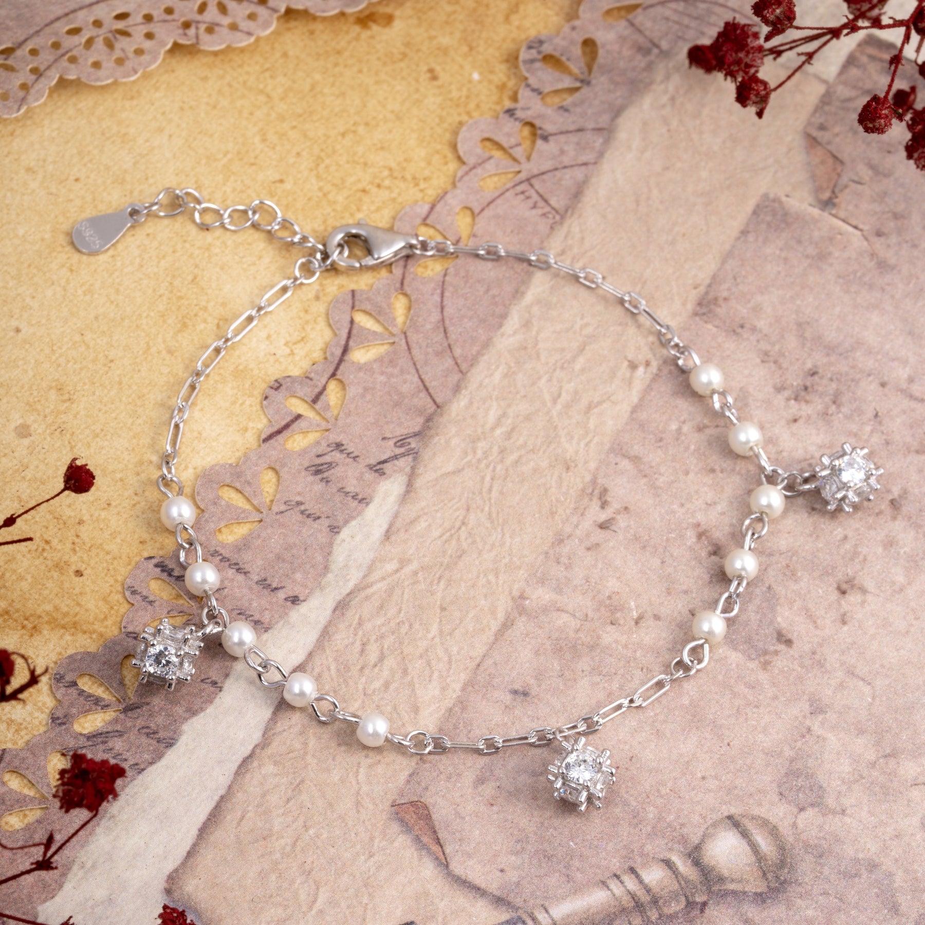 The Milky-Way Bracelet captures celestial elegance through its thoughtfully curated design. Adorned with lustrous Pearls and sparkling Cubic Zirconia stones, this piece combines timeless sophistication with contemporary allure. The interplay of soft Pearl luminescence and brilliant CZ sparkle creates a mesmerizing effect, perfect for elevating both everyday wear and special occasions. A refined accessory that speaks to those who appreciate understated luxury and stellar craftsmanship.