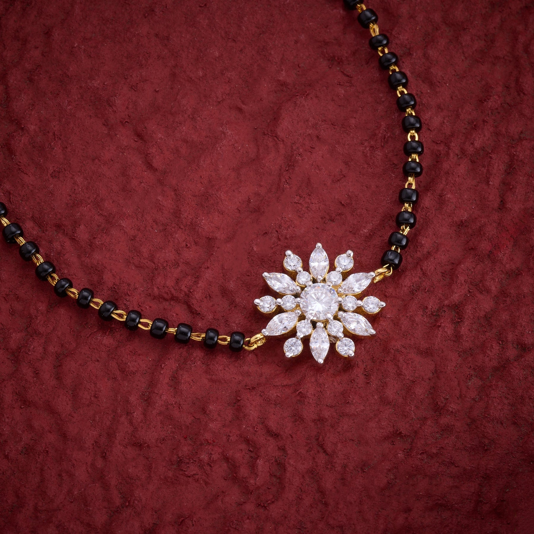 The Raven Bloom Bracelet features an elegant Floral design intricately accented with Black Beads and sparkling Cubic Zirconia stones. This refined combination delivers a sophisticated look, perfect for adding a touch of timeless elegance to any outfit. Crafted to highlight the contrast between the dark beads and shimmering stones, it offers both style and versatility for discerning jewellery enthusiasts.