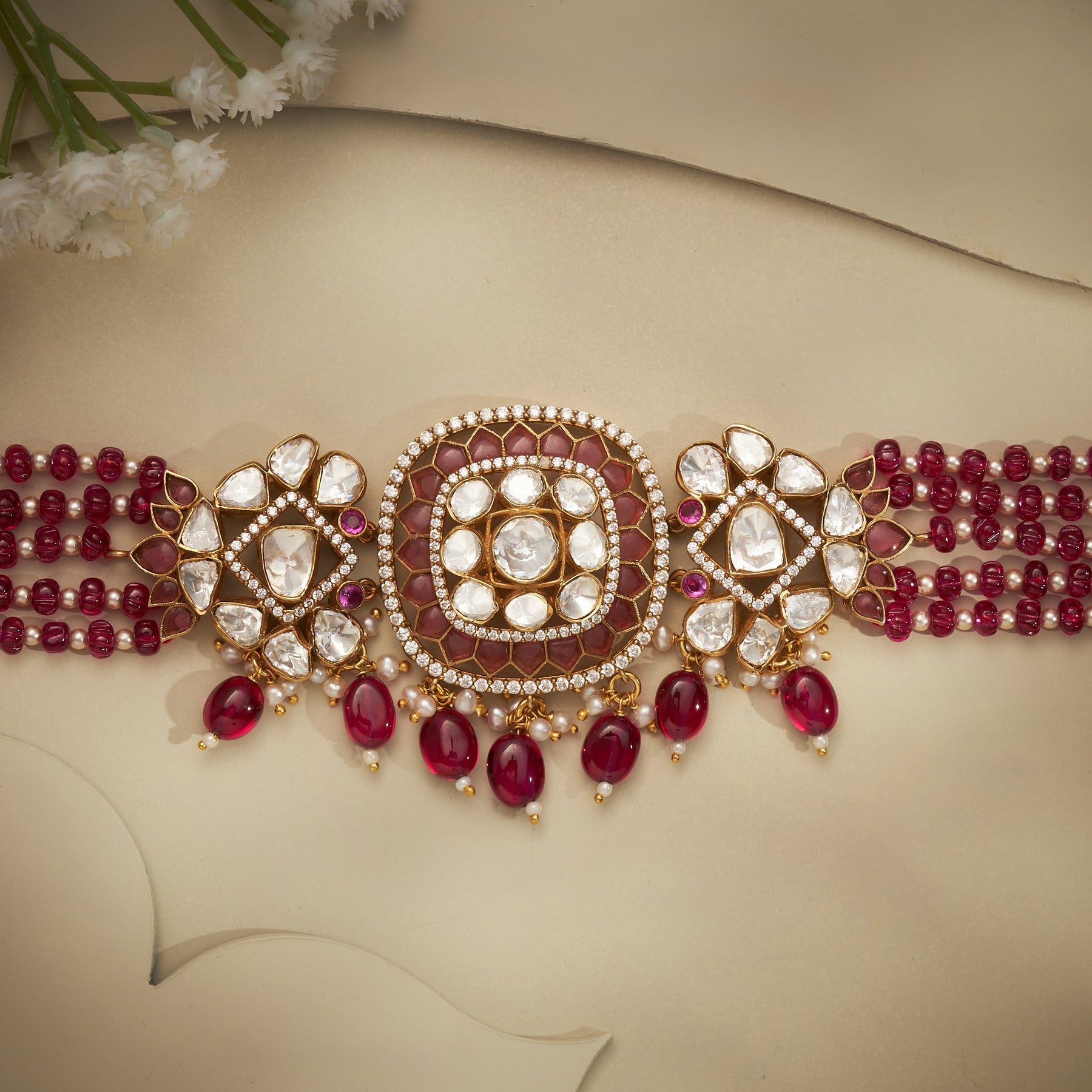 Elevate your jewelry collection with this exquisite Victorian-inspired necklace, meticulously crafted with a harmonious blend of geometric and organic design elements. The piece features a striking Square and Pear-shaped centerpiece adorned with brilliant CZ stones and luminous Moissanite, creating exceptional sparkle and sophistication. Delicate Red bead and Pearl hangings cascade gracefully from the main setting, while a coordinating Red beaded chain completes the design with refined elegance. Perfect for those who appreciate intricate craftsmanship and timeless Victorian aesthetics with a contemporary twist.