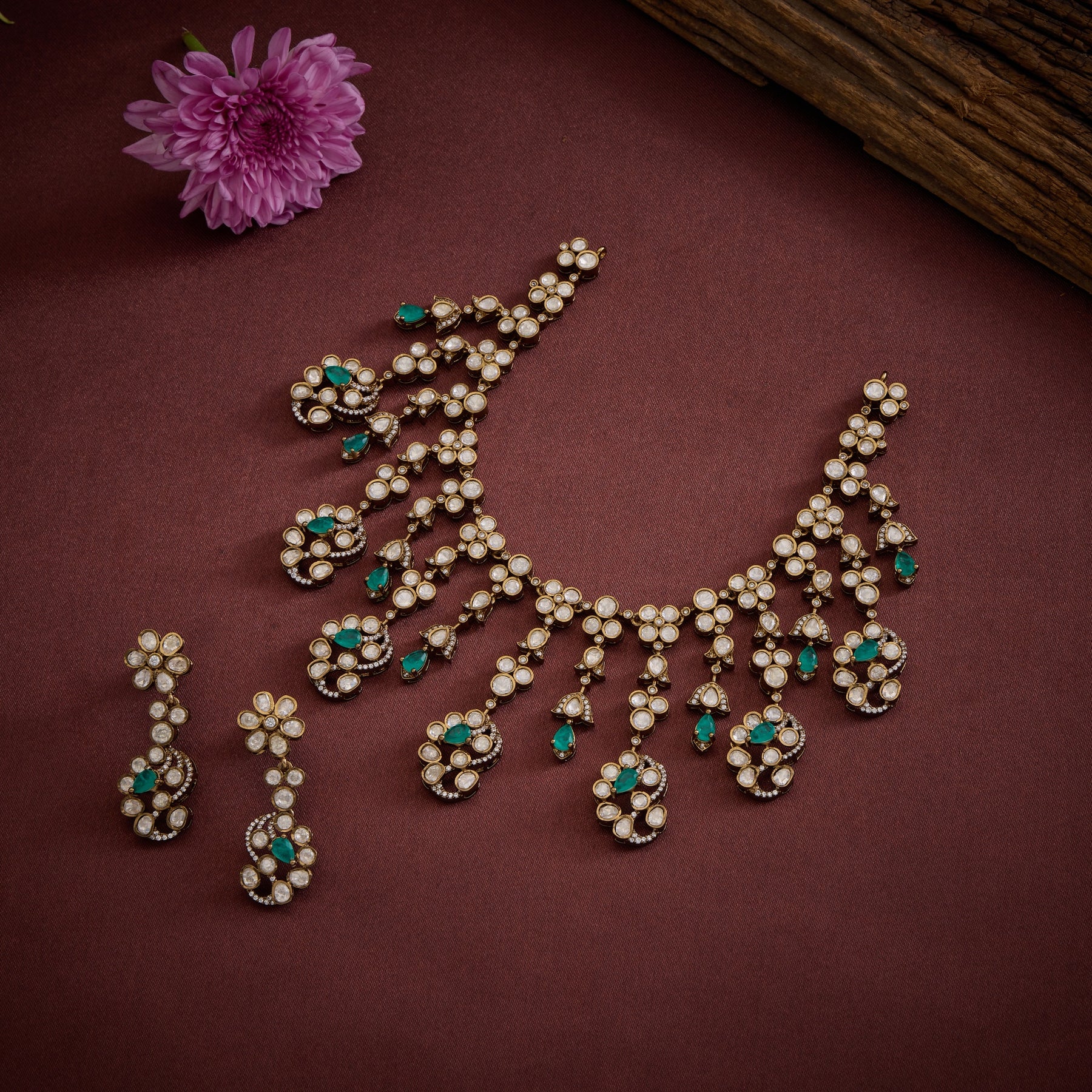 The Emermango Necklace Set combines the warmth of Mango-inspired design with sophisticated gemstone craftsmanship. This exquisite piece features a harmonious blend of Moissanite for brilliant sparkle, Cubic Zirconia for elegance, and Emeralds for rich verdant depth. Each stone is thoughtfully selected to create a balanced composition that captures both natural beauty and refined luxury. Perfect for those who appreciate distinctive jewellery that tells a story through its carefully curated gemstone palette and artistic design.
