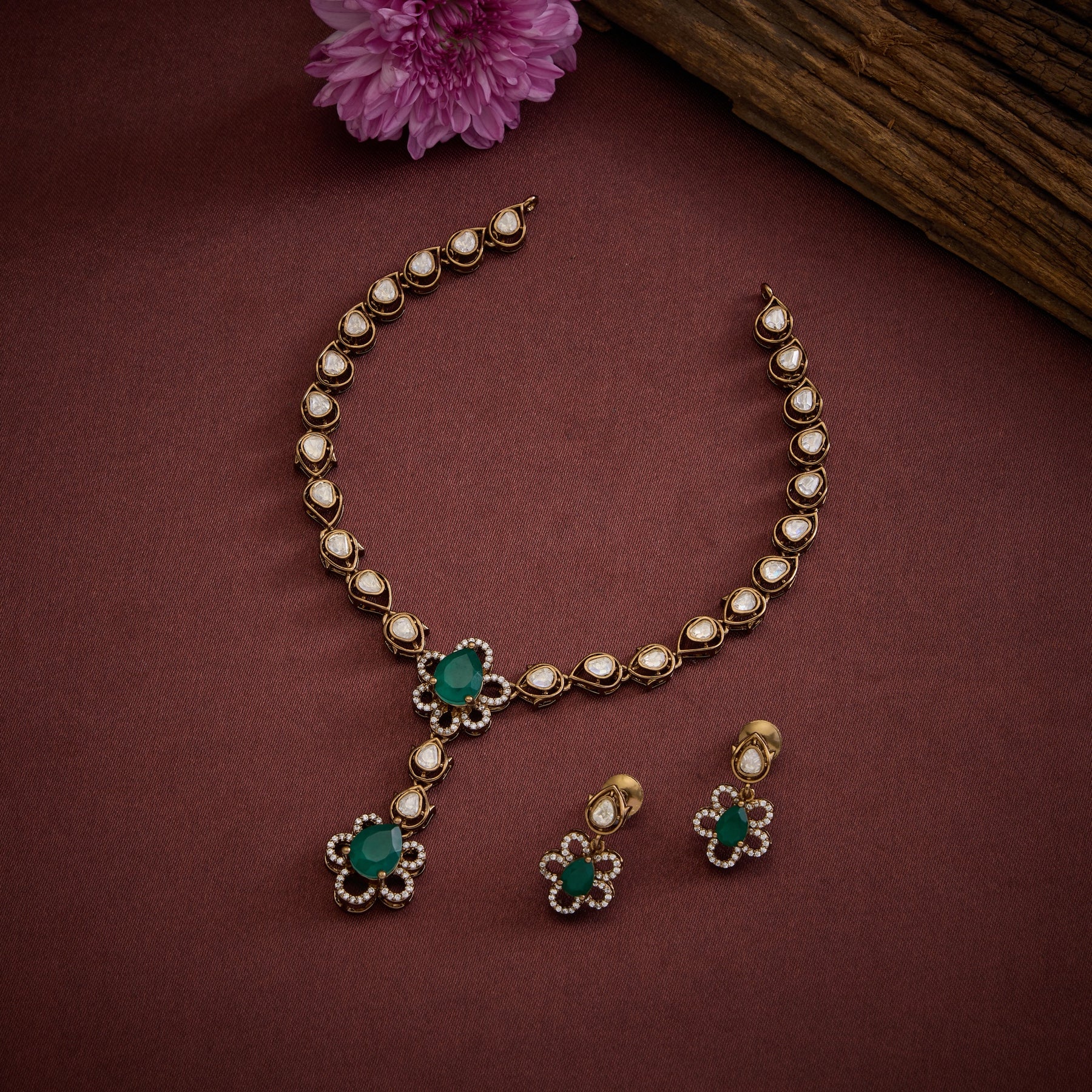 The Emervine Necklace Set combines timeless elegance with sophisticated gemstone craftsmanship. This exquisite piece features a harmonious blend of moissanite, cubic zirconia, and emeralds set within an intricate floral and pear-shaped design. The moissanite stones deliver brilliant sparkle and durability, while the emeralds introduce rich, verdant depth. The thoughtfully arranged pear cuts create dynamic light play, making this necklace set a versatile choice for both everyday refinement and special occasions. Each stone is expertly positioned to enhance the overall luminosity and visual impact of the design.