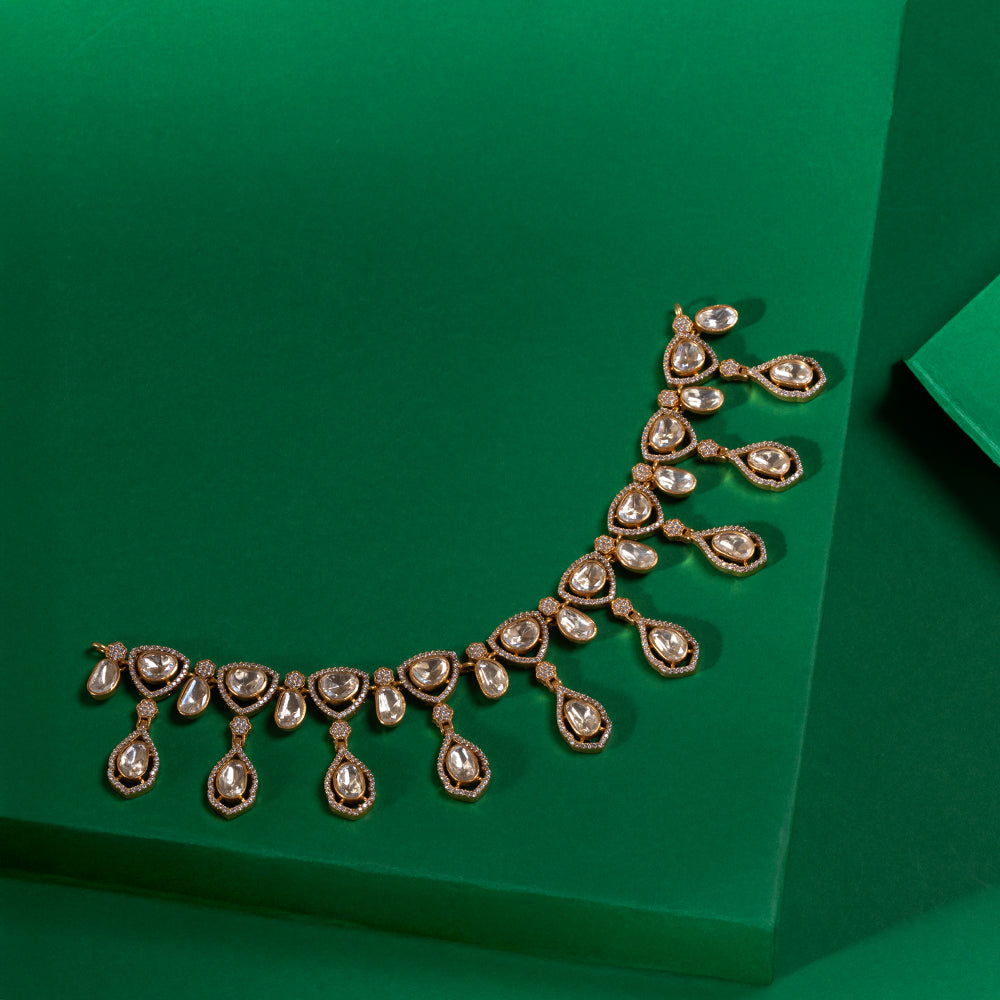 The Maison Elore Short Necklace is expertly crafted to showcase the brilliance of both CZ stones and Moissanite. This combination offers exceptional sparkle and durability, making it a sophisticated choice for those seeking elegance with lasting shine. Perfect for elevating any ensemble, the necklace balances luxury and affordability with precision-cut stones that catch the light beautifully.
