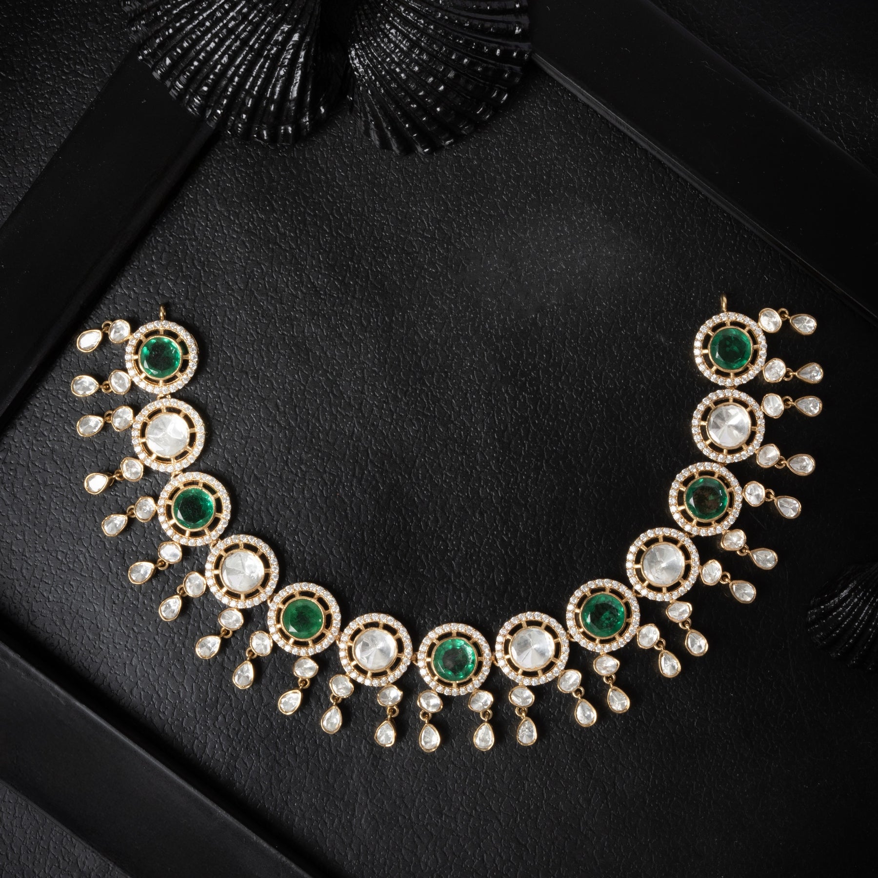 The Orbit Victorian Necklace combines timeless elegance with versatile Gemstone options. Crafted with a distinctive Round design, this piece features your choice of Moissanite for brilliant sparkle, Emeralds for rich Green sophistication, or Cubic Zirconia for affordable radiance. Each stone is thoughtfully selected to complement the Victorian aesthetic, offering a refined accessory suitable for special occasions. The expertly designed setting ensures secure stone placement while maintaining the classic charm of Victorian-inspired jewellery.