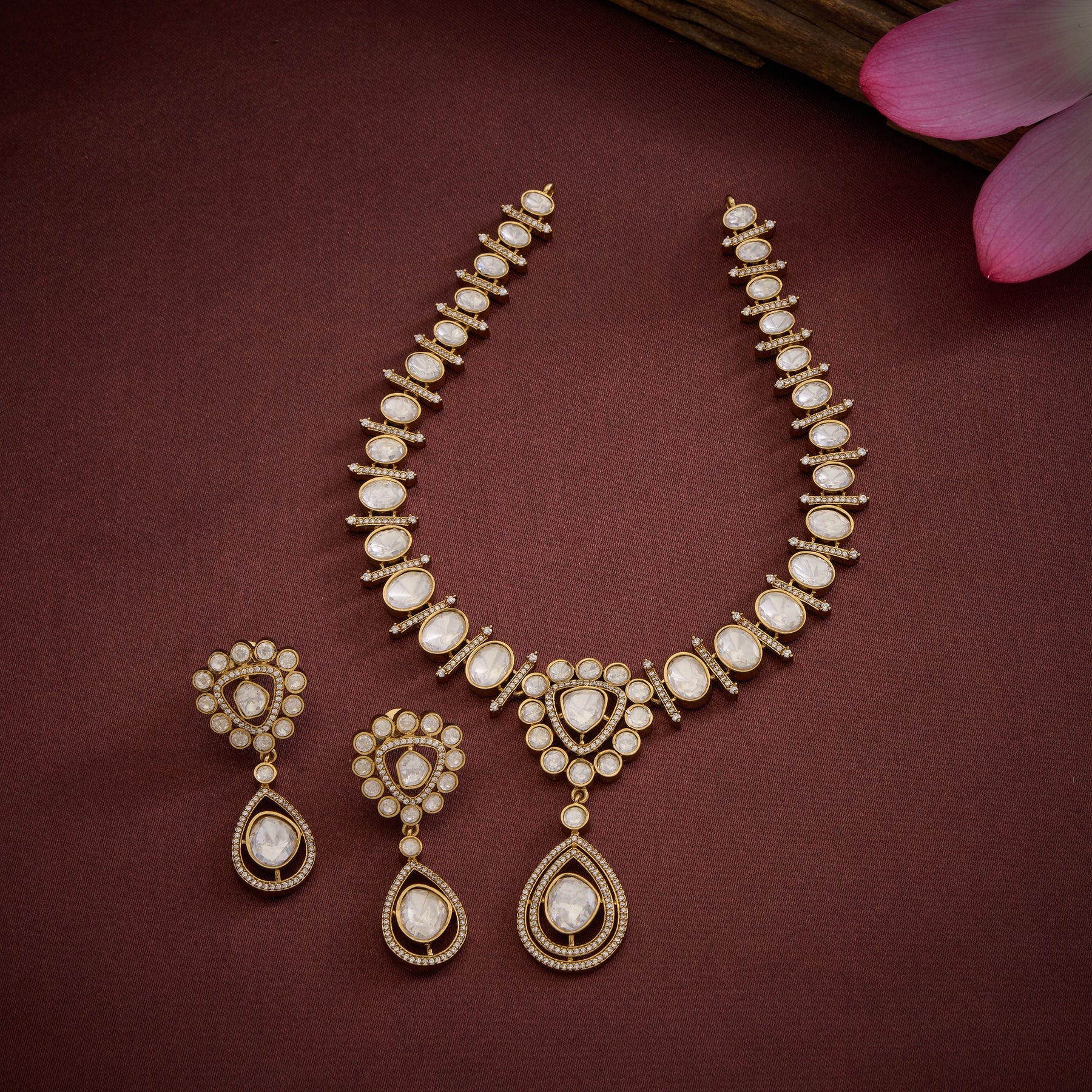 92.5 Silver, 24kt Gold Polish Necklace Set.