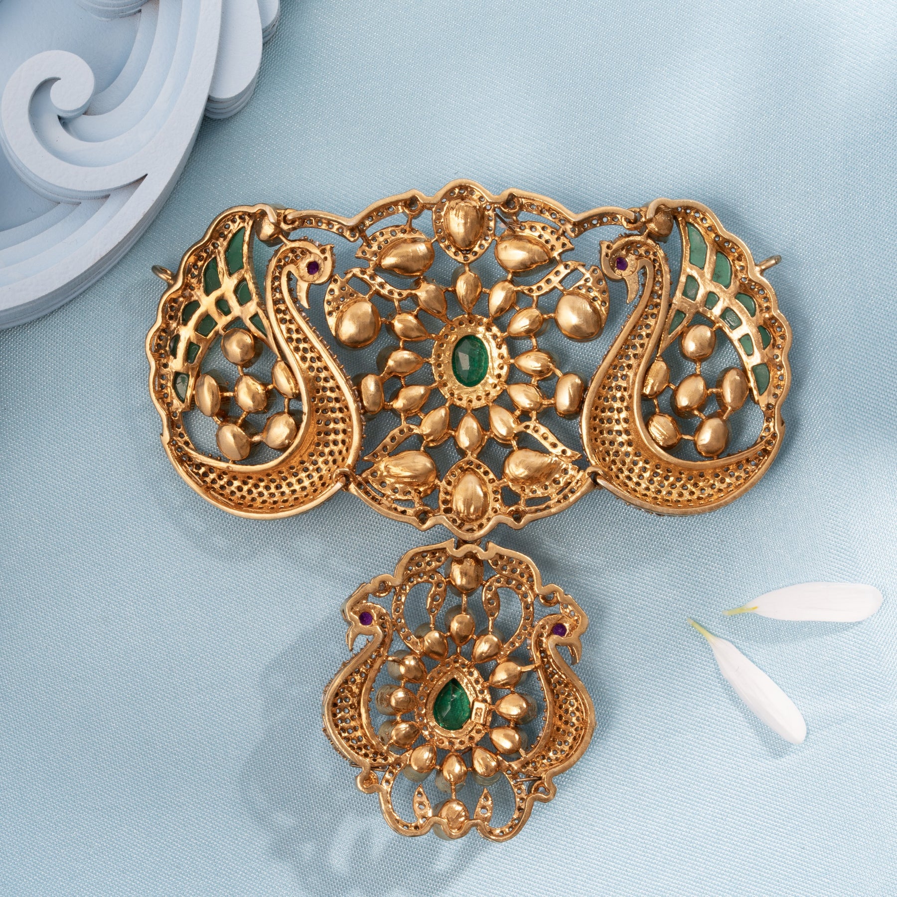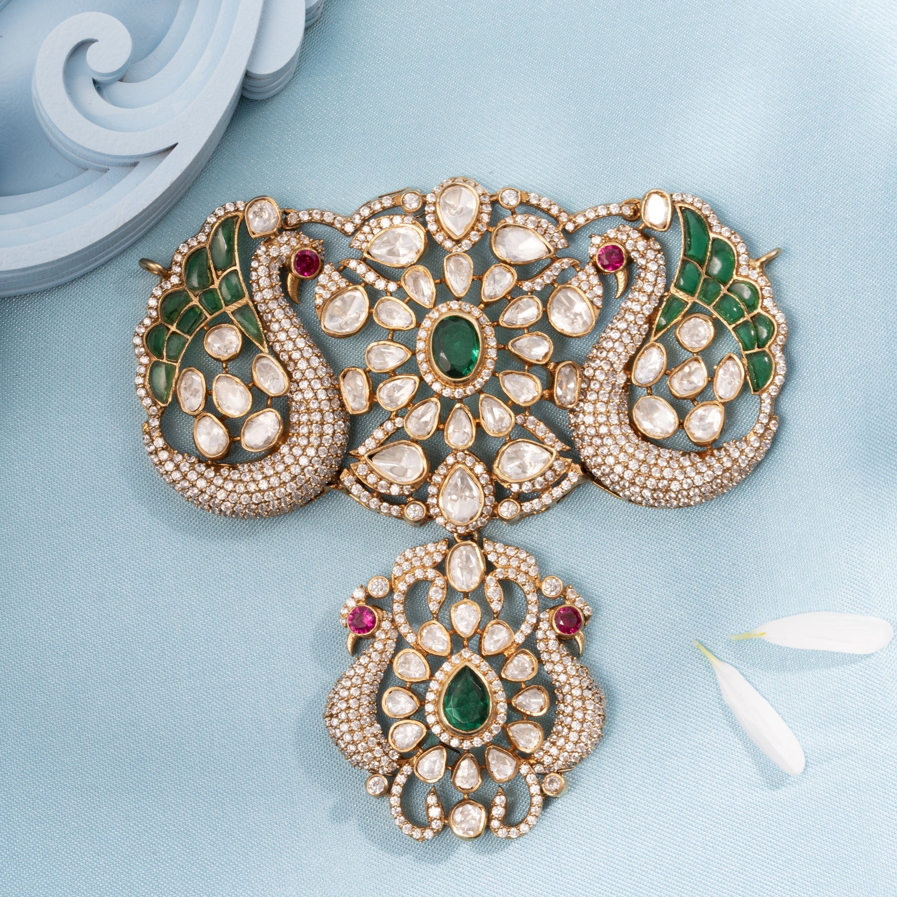 Embrace timeless elegance with this exquisite Swan Bloom Victorian Pendant. Meticulously crafted with a graceful Swan and delicate Floral Motif, this piece combines classic Victorian aesthetics with contemporary sparkle. Adorned with shimmering Moissanites and Cubic Zirconia stones that catch the light beautifully, the design is enhanced by rich Green stones that add depth and sophistication. Perfect for those who appreciate ornate jewellery with enduring charm, this pendant makes a refined statement for special occasions.