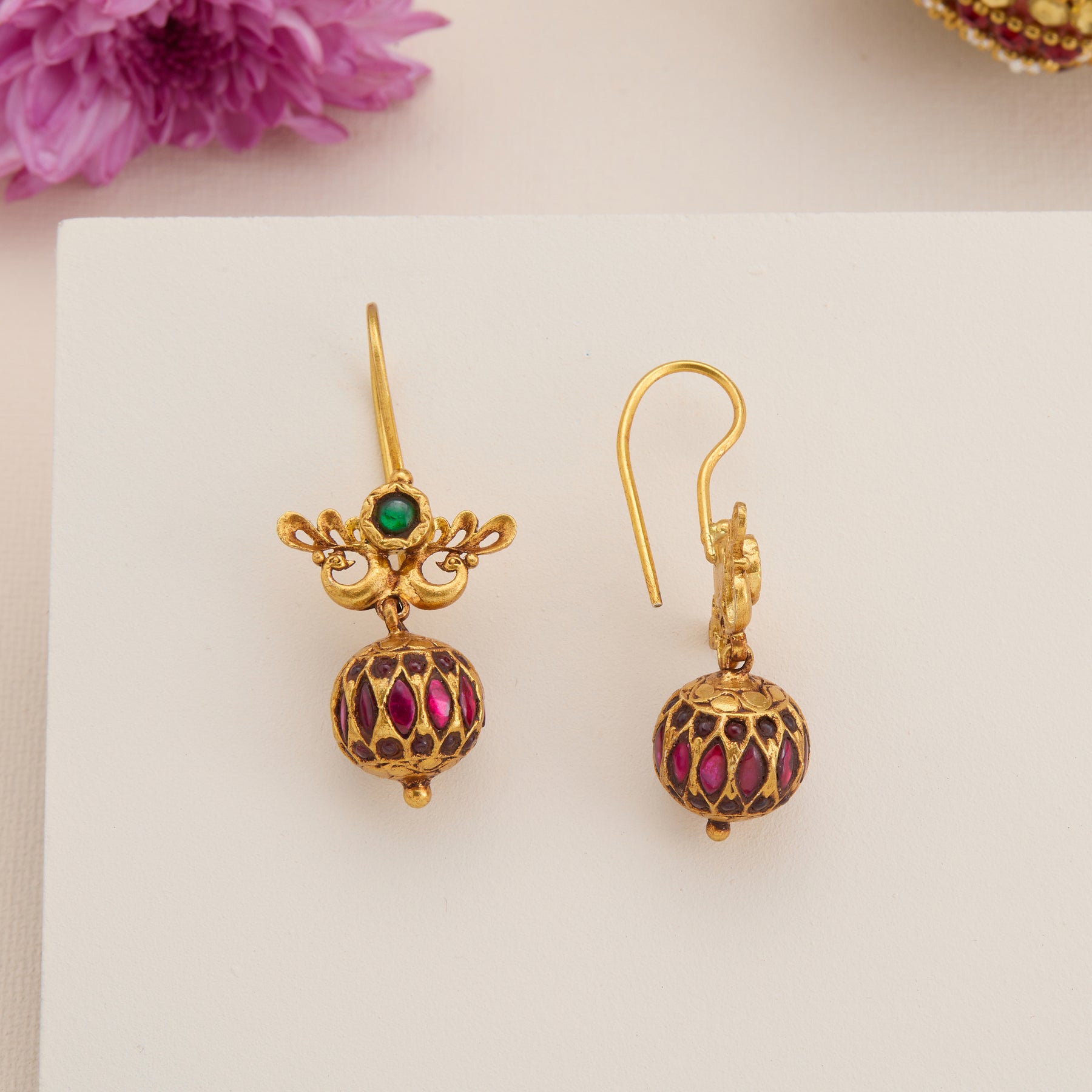 Padma Gola Hangings are exquisitely crafted using traditional Kundan work paired with vibrant Emerald stones, showcasing refined artistry. This design blends timeless elegance with a striking colour contrast, making it an exceptional choice for adding a luxurious and culturally rich accent to your decor or attire. Ideal for those who appreciate heritage craftsmanship and sophisticated detailing.