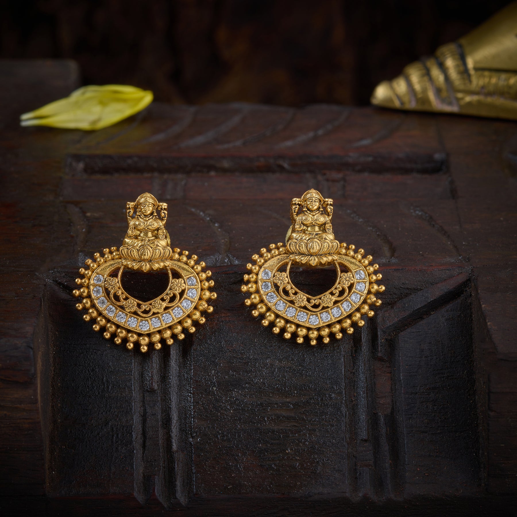 Karuna Kamala Studs showcase a refined design featuring the goddess Lakshmi, symbolizing prosperity and grace. Adorned with sparkling CZ stones, these earrings combine traditional artistry with modern brilliance, offering a sophisticated touch to any outfit while reflecting cultural heritage. Perfect for those seeking elegance with spiritual significance.