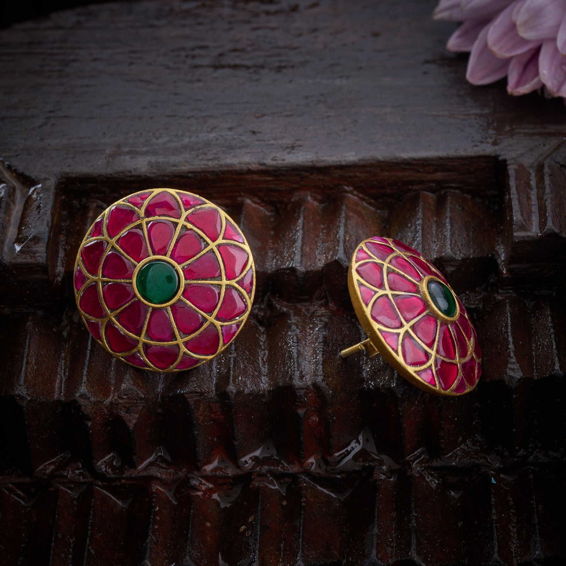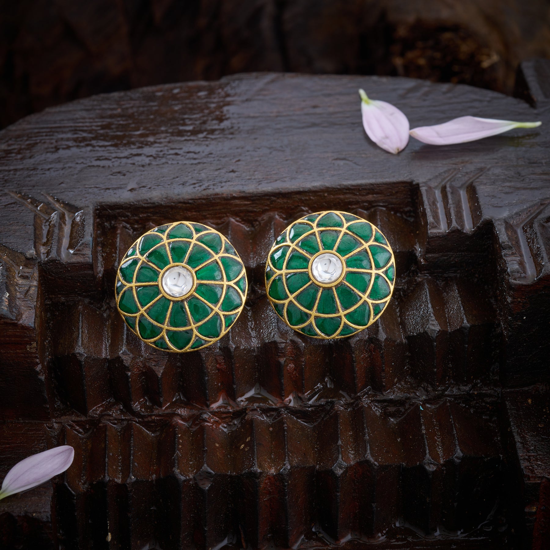 The Kundan Parijata Studs beautifully blend traditional artistry with timeless elegance. Featuring intricate Floral designs, these studs are expertly embellished with exquisite Kundan stones and vibrant Emerald accents. Perfectly crafted to enhance any ensemble, they offer a refined sparkle and a touch of sophistication ideal for special occasions.