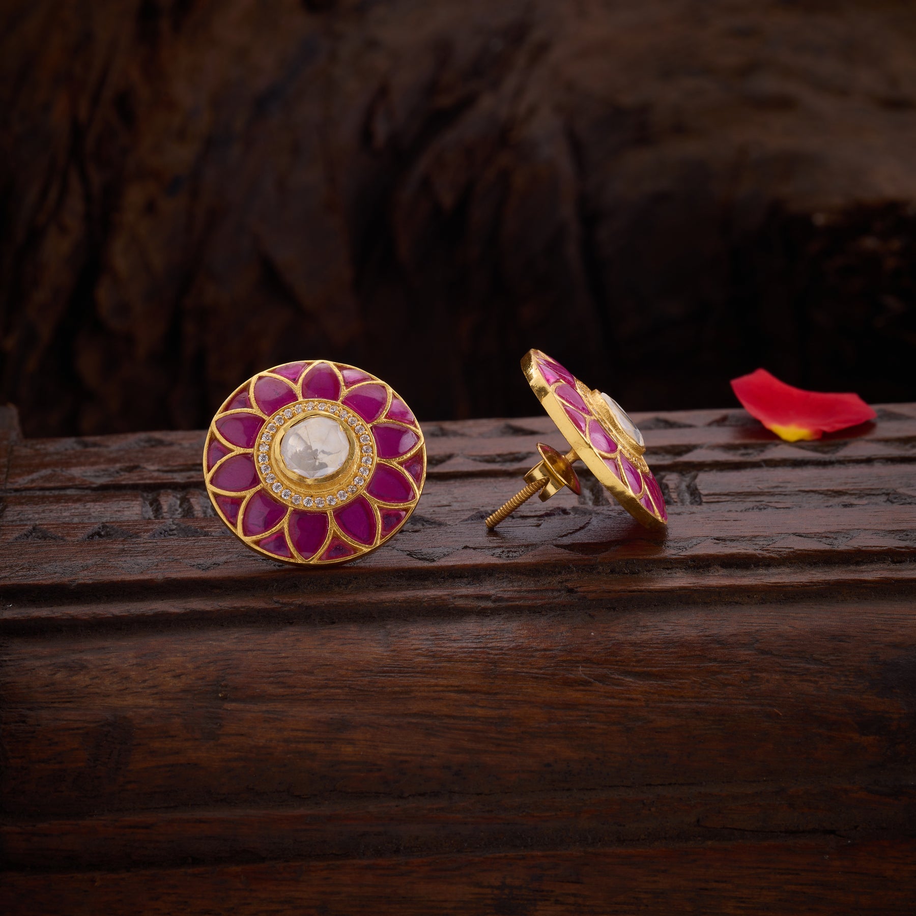 Manohara Studs showcase an expert blend of elegance and craftsmanship, featuring a delicate Floral design adorned with sparkling Moissanite, brilliant Cubic Zirconia stones, and vibrant Rubies. This combination ensures lasting brilliance and eye-catching colour, making these studs a refined choice for sophisticated jewellery lovers seeking timeless beauty and exceptional quality.