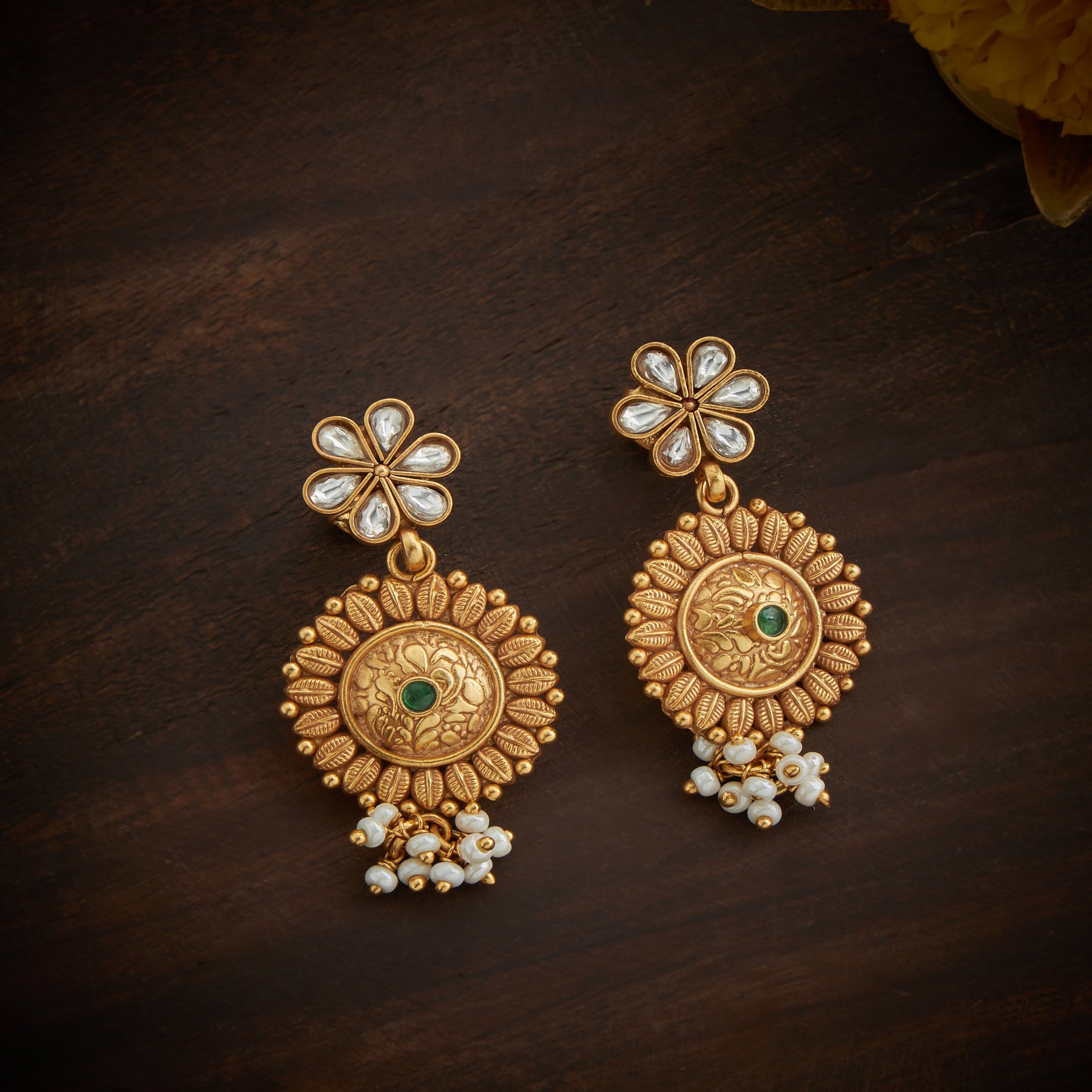 The Moonflower Necklace Set features an expertly crafted design combining delicate Floral and Half-Moon motifs. Adorned with sparkling Kundan stones and accented by elegant Pearl hangings, this set blends traditional craftsmanship with refined aesthetics, making it a sophisticated choice for special occasions.