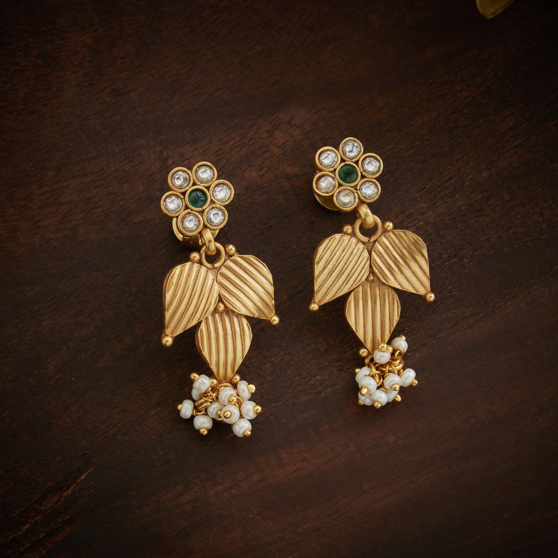The Floristella Necklace Set showcases a refined blend of Star and Floral motifs, expertly accented with traditional Kundan stones. Delicate Pearl hangings add graceful movement and an elegant finish, making this set a perfect statement piece for special occasions. Crafted to elevate your style with timeless artistry, it reflects both intricate design and cultural heritage.