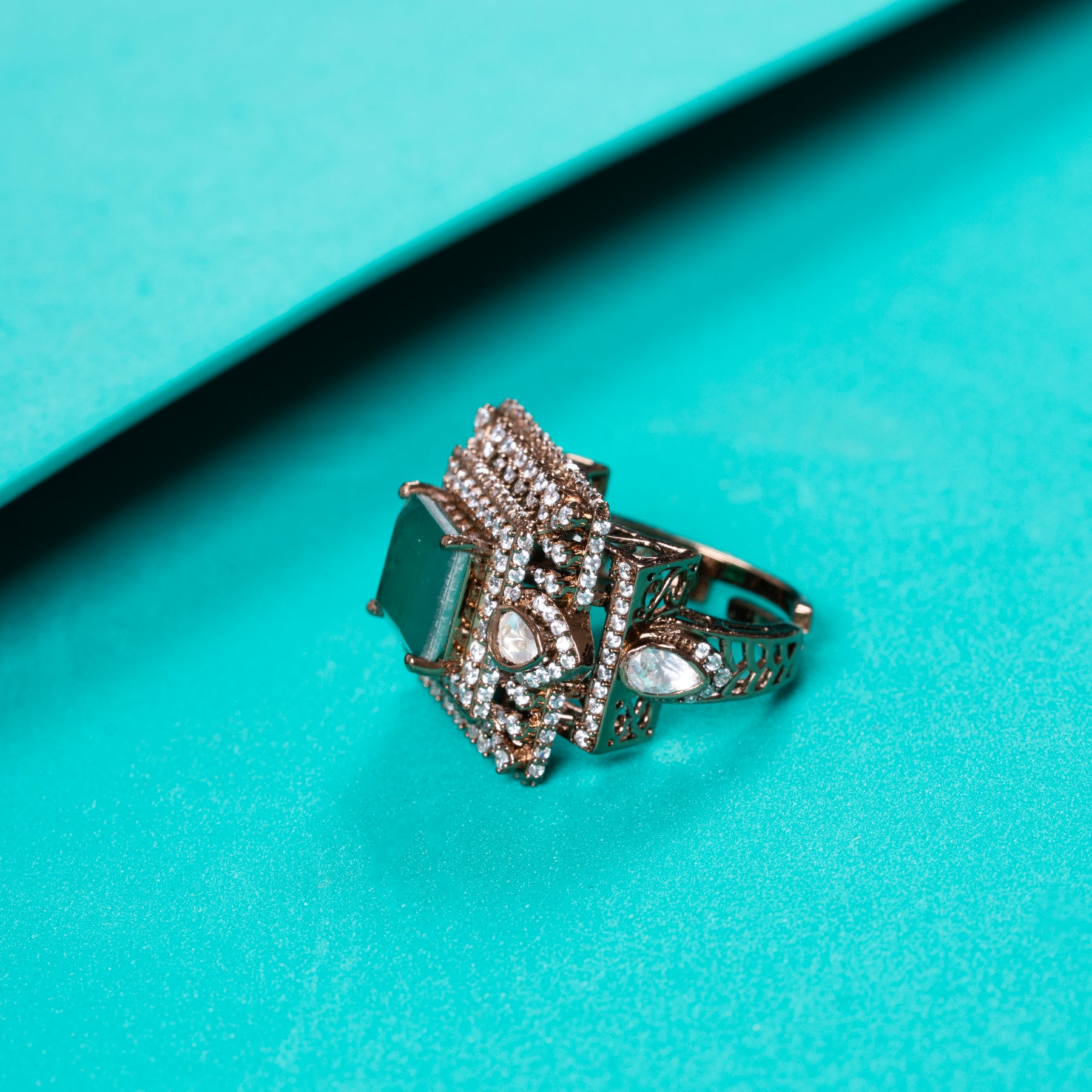 The Regal Square Ring features a sophisticated blend of Square and Floral designs, intricately set with sparkling cubic zirconia stones. At its centre, a vibrant Emerald stone adds a striking focal point, enhancing the ring’s elegant appeal. This expertly crafted piece balances modern geometry with classic Floral motifs, perfect for those seeking a distinctive and refined accessory.