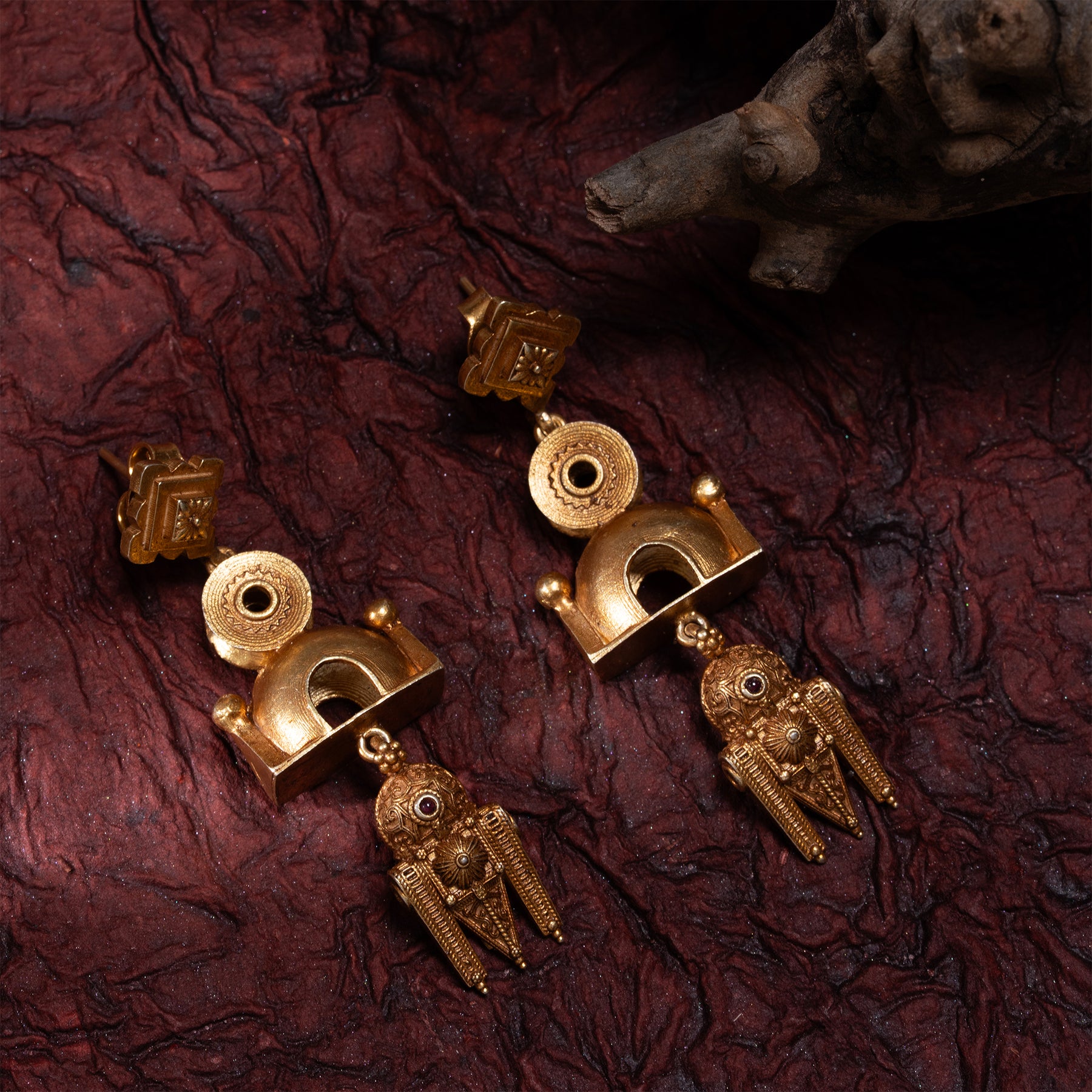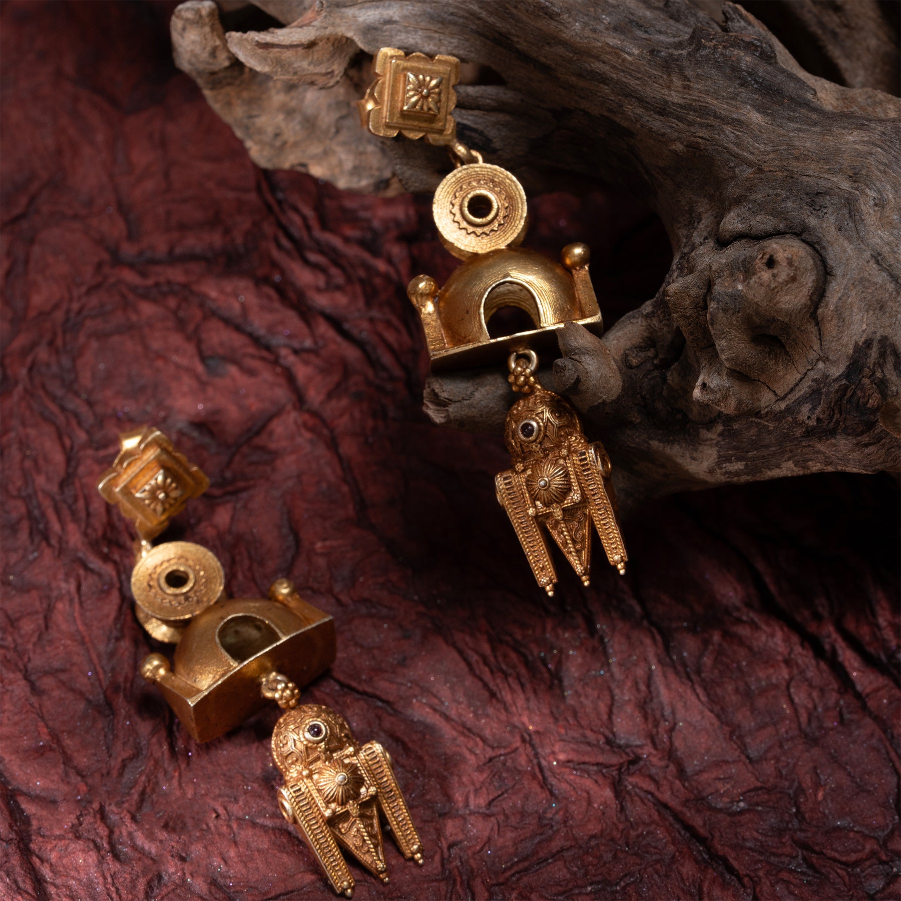 Elevate your elegance with the Talisman Drops Danglers, expertly crafted featuring exquisite Ruby stones. These earrings combine timeless design with the rich, vibrant hues of Ruby, offering a sophisticated accessory that enhances any ensemble. Perfect for those seeking a refined statement piece, the Talisman Drops Danglers bring both luxury and a touch of mystique to your jewellery collection.