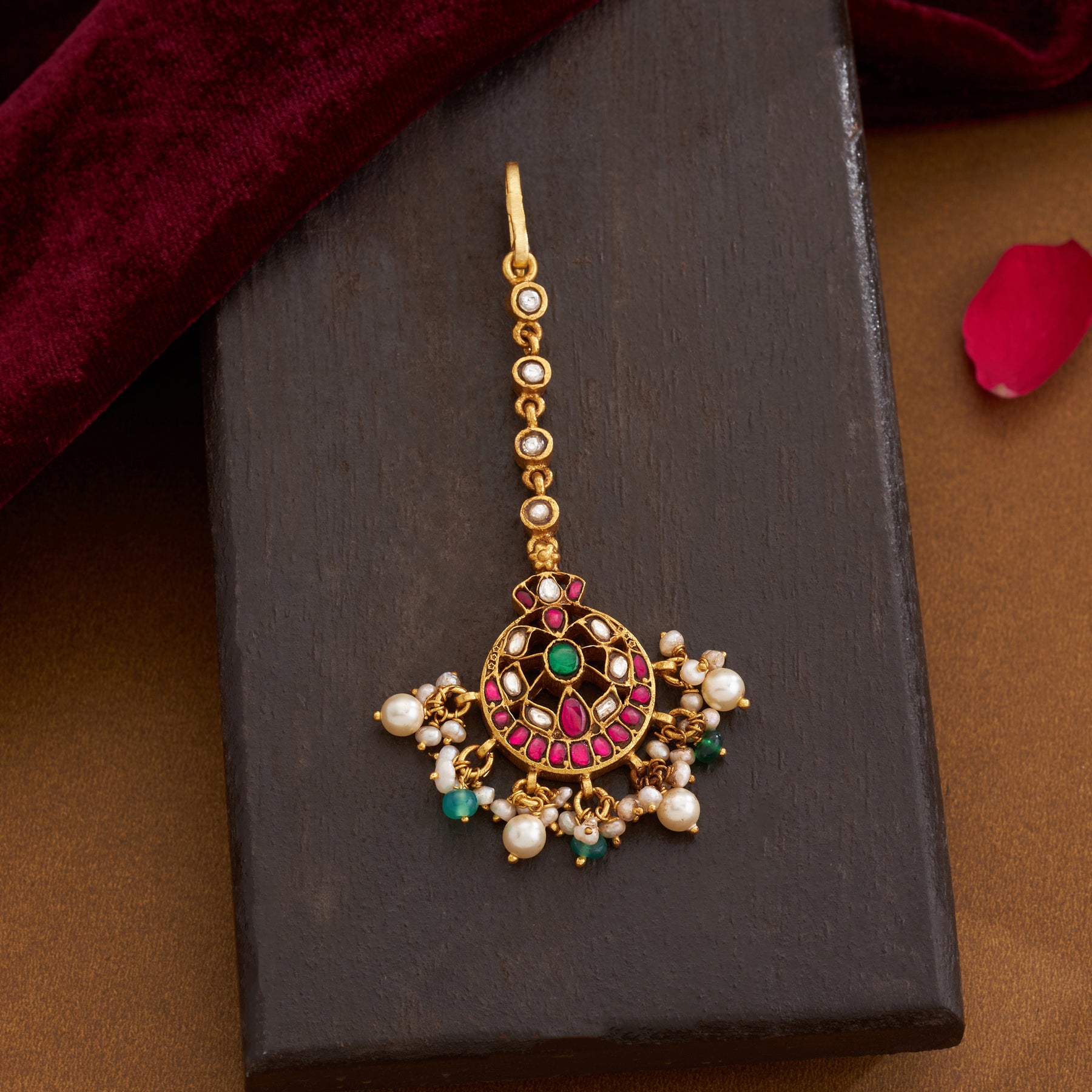 92.5 Silver, 24kt Gold Polish Maang Tikka.