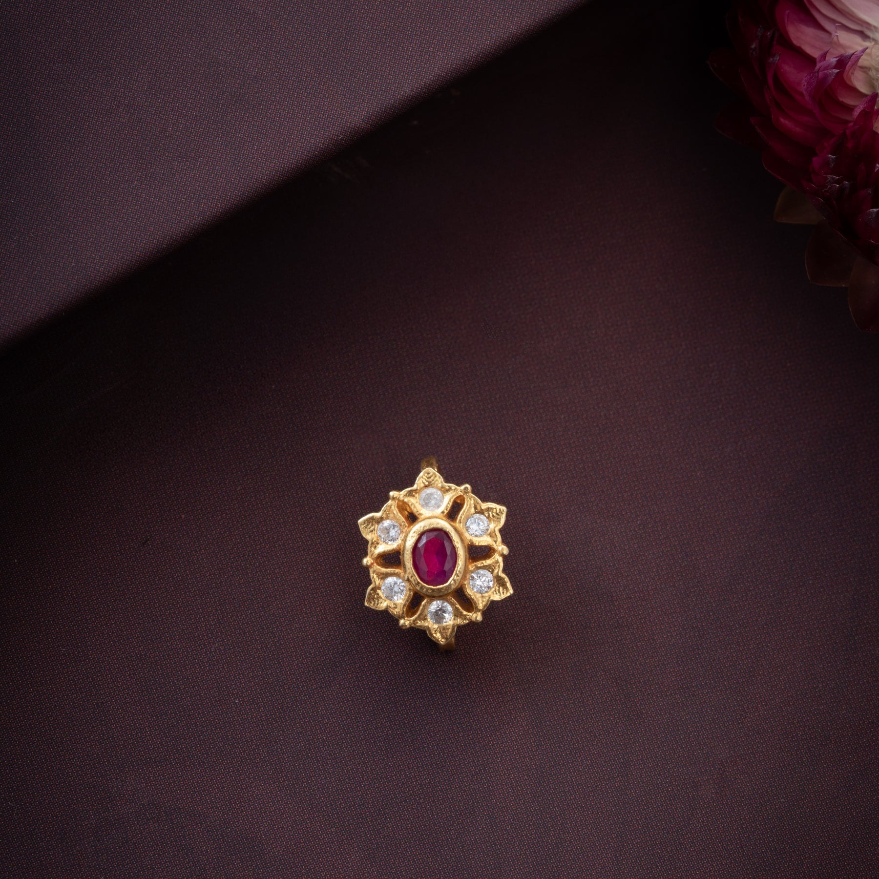 The Gulab Rajni Nath features an exquisite Oval-cut Ruby as its centrepiece, complemented by precisely set Cubic Zirconia stones that enhance its brilliance and sophistication. This thoughtfully designed piece combines the deep, luxurious allure of Ruby with the sparkle of CZ accents, creating a striking contrast that draws the eye. Perfect for those who appreciate classic elegance with contemporary styling, this piece delivers refined beauty at an accessible price point.