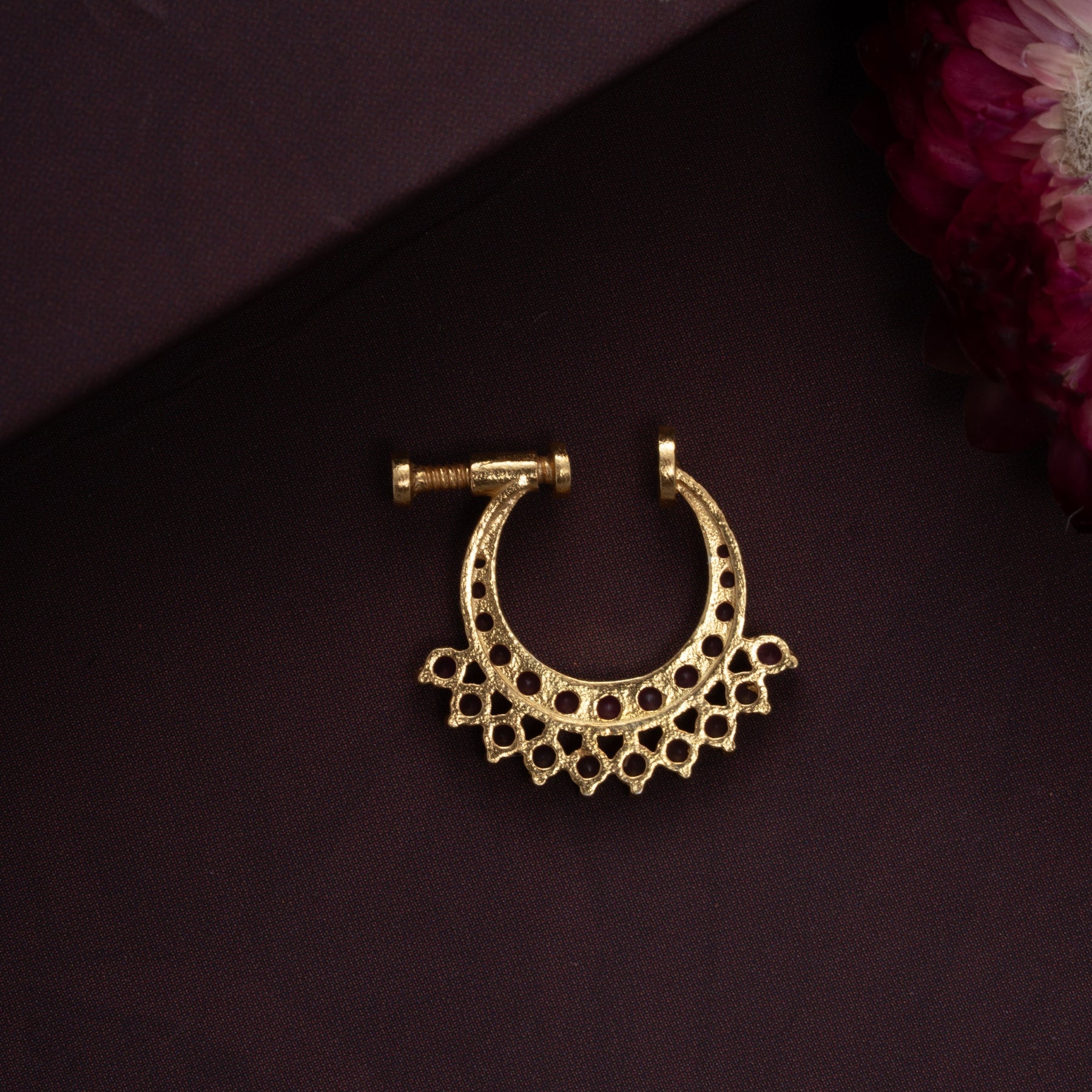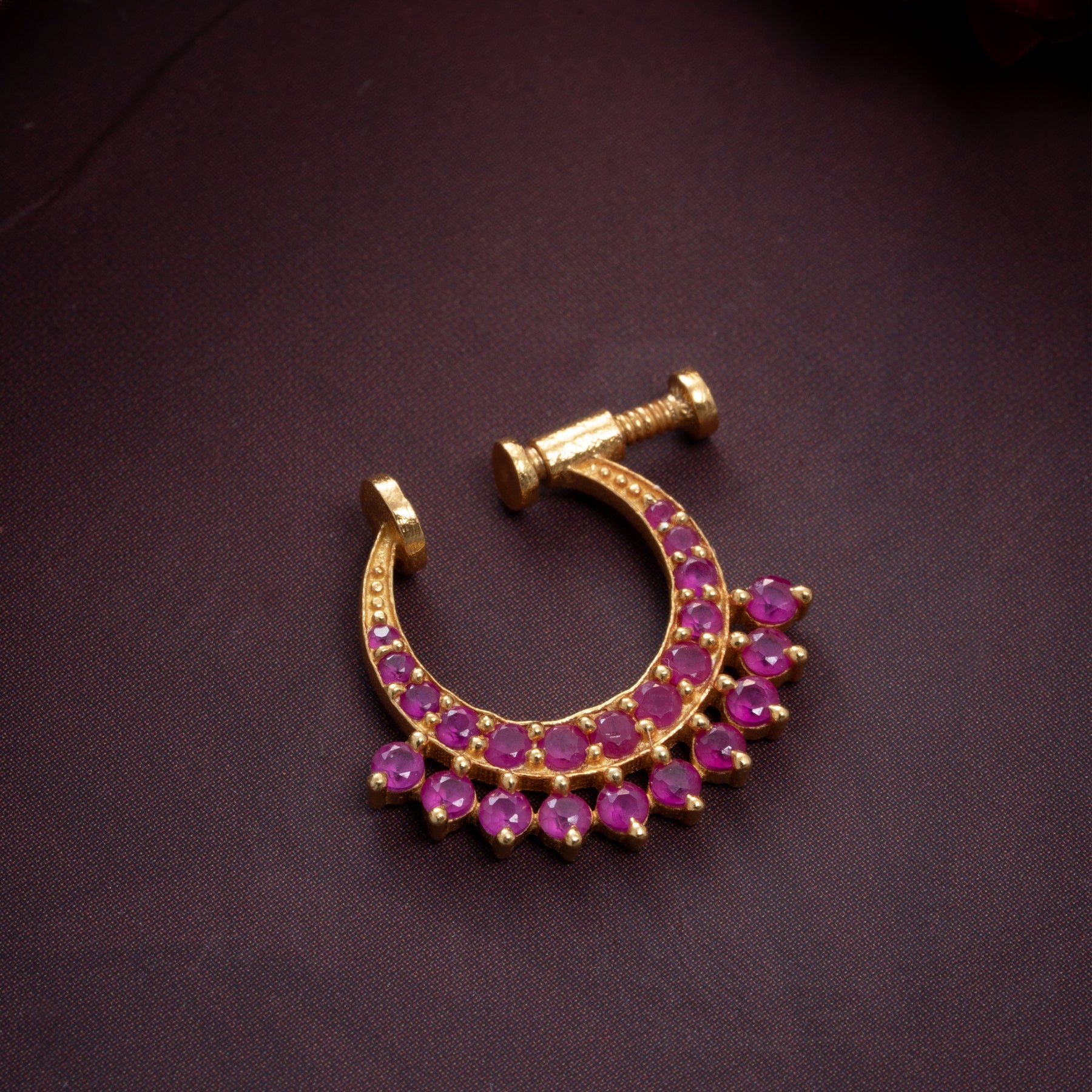 Gulabi Rang Nath showcases exquisite craftsmanship with its Kundan setting and radiant Ruby centrepiece. This piece combines traditional artistry with timeless elegance, featuring intricate Kundan work that frames the deep crimson Ruby with precision and sophistication. The ornate setting reflects centuries of jewellery-making heritage, making it an ideal choice for those who appreciate fine gemstone artistry and authentic craftsmanship. Perfect for special occasions or as a treasured addition to your collection.