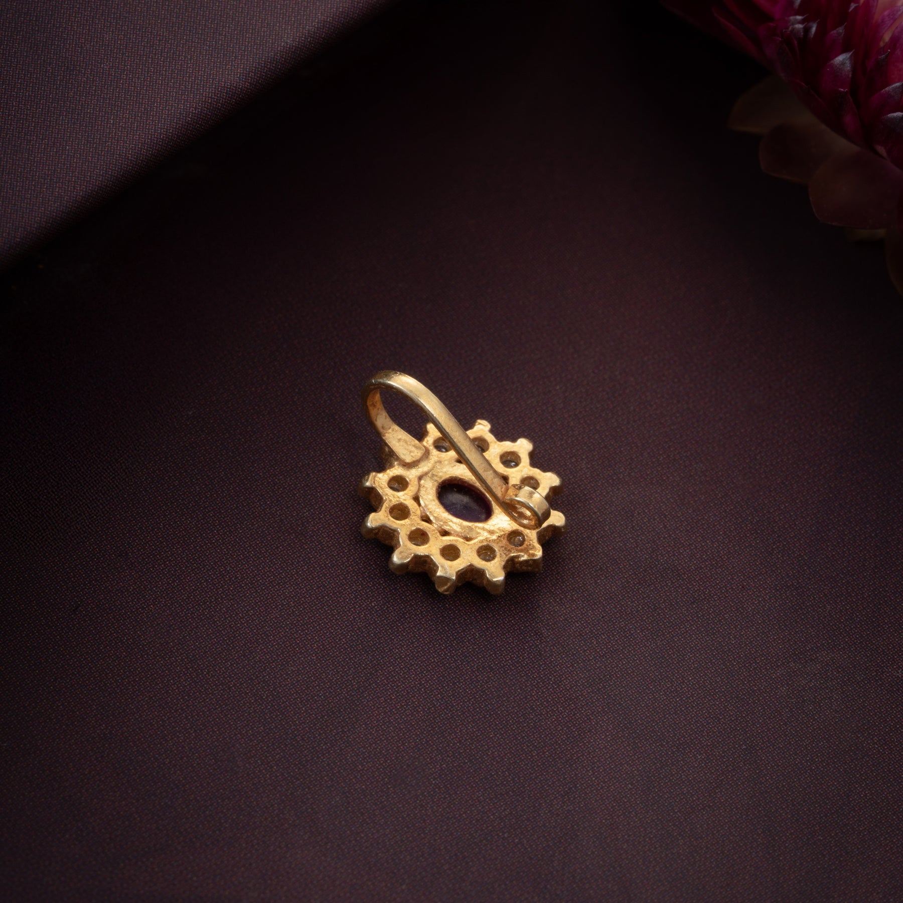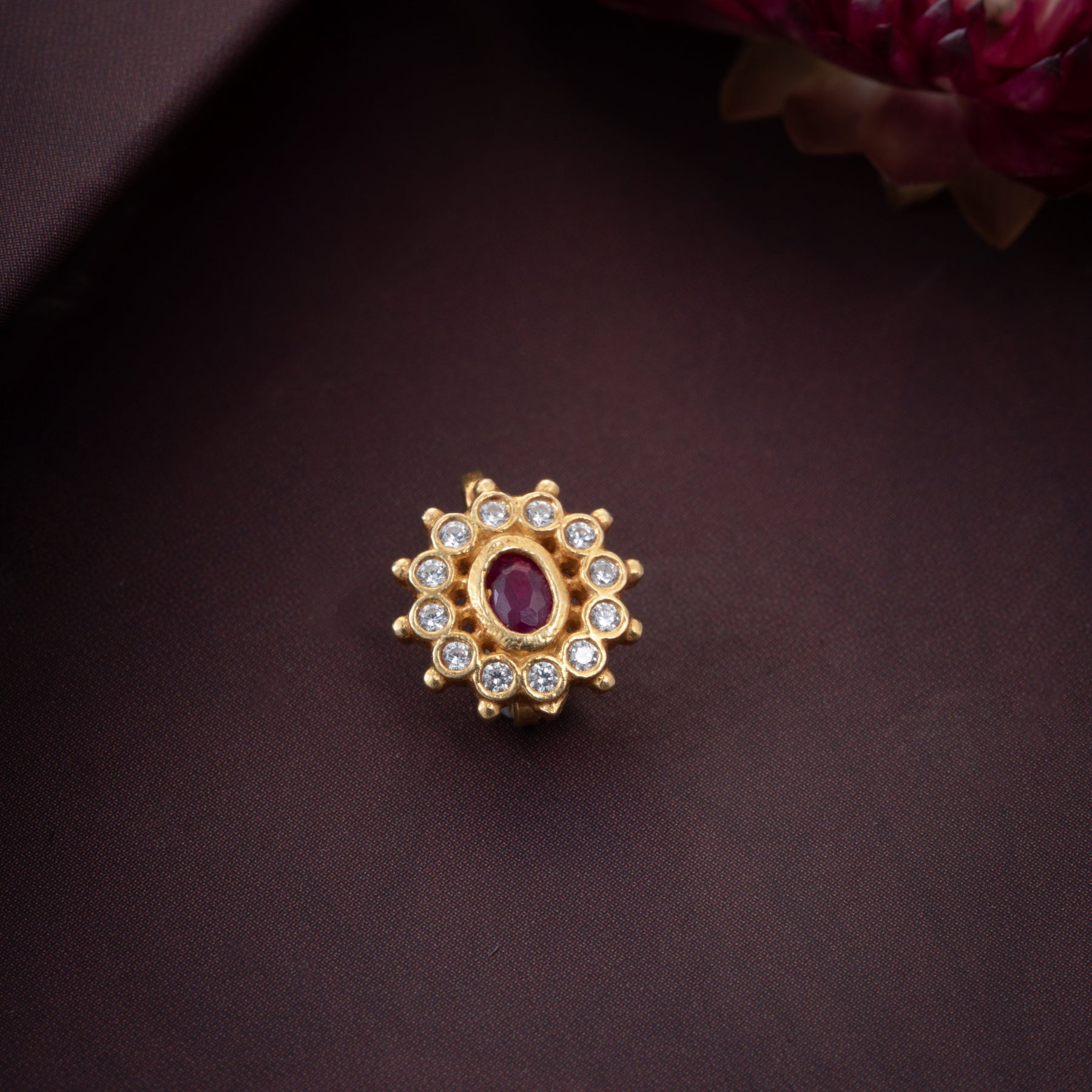 The Kumkumika Nath is an exquisite piece of traditional jewelry, meticulously designed with delicate floral motifs adorned with lustrous Ruby and sparkling Cubic Zirconia stones. Each element is carefully crafted to enhance the natural beauty of the wearer while maintaining authentic craftsmanship. The combination of rich Rubies and brilliant CZ stones creates a captivating interplay of colour and light, making this nath a versatile accessory for festive occasions. A timeless addition to any jewellery collection.