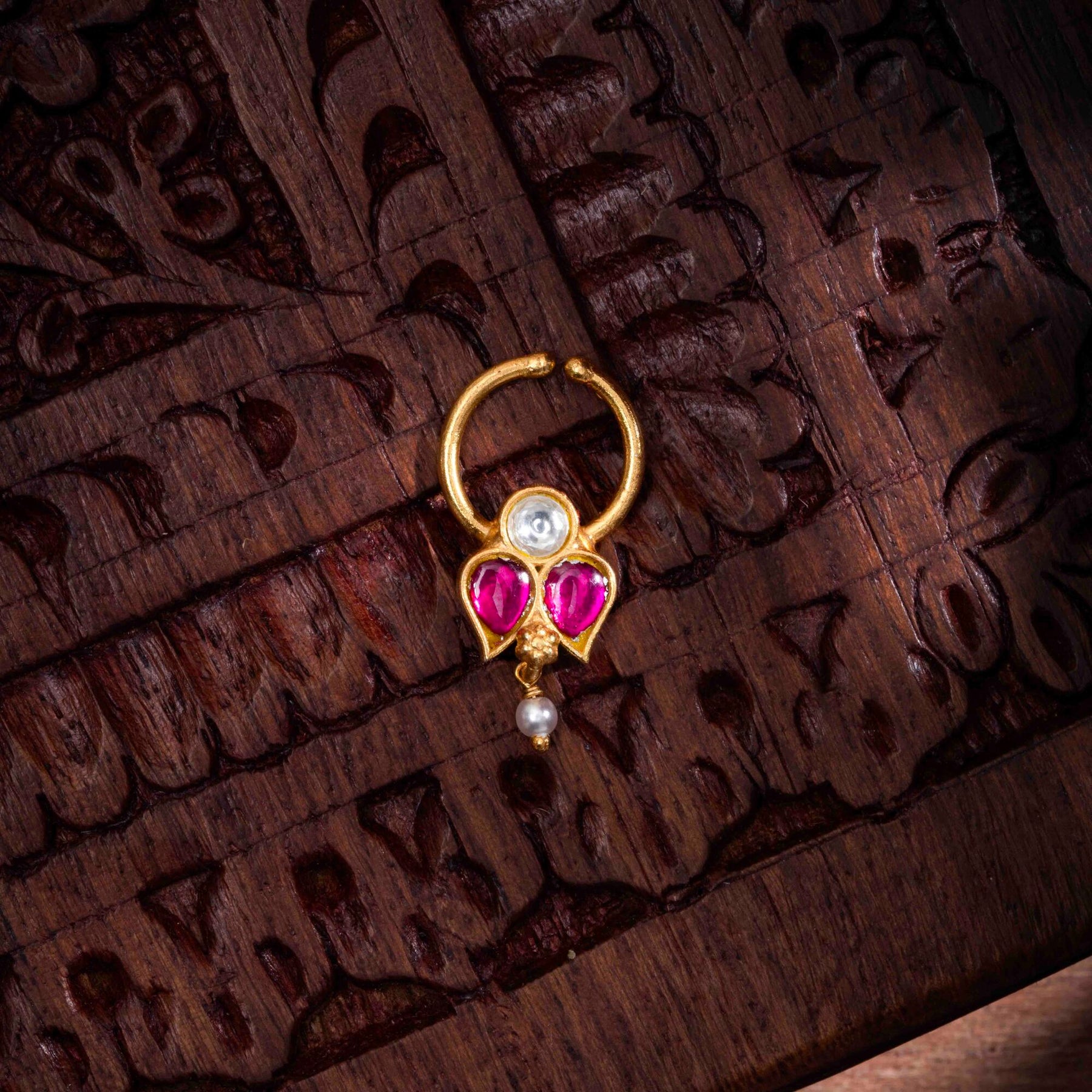 Elevate your piercing collection with the Mahira Kundan Septum Ring, a sophisticated piece that marries traditional craftsmanship with contemporary elegance. Meticulously designed with intricate Kundan Work, this septum ring features lustrous gemstones set in a timeless pattern that catches light beautifully. The ornate detailing showcases the artistry of skilled artisans, making it an ideal choice for those who appreciate heritage-inspired jewellery. Perfect for special occasions, this piece adds a touch of regal charm to your personal style.