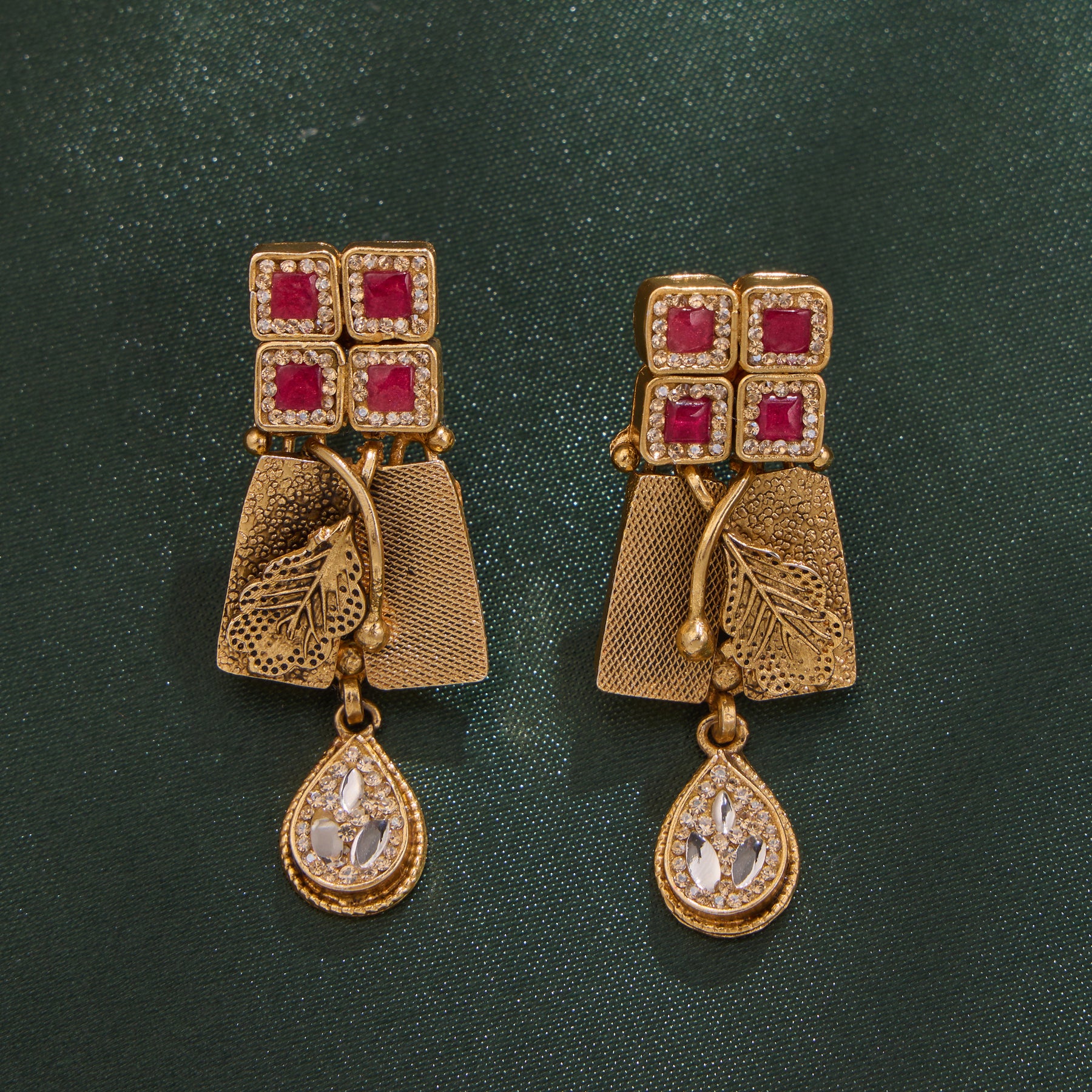 The Kesarika Necklace Set features exquisite craftsmanship with sparkling CZ stones and traditional Kundan work, enhanced by elegant Pear-shaped hangings. This blend of contemporary sparkle and classic design makes it an ideal choice for special occasions, adding a refined touch to your ensemble.