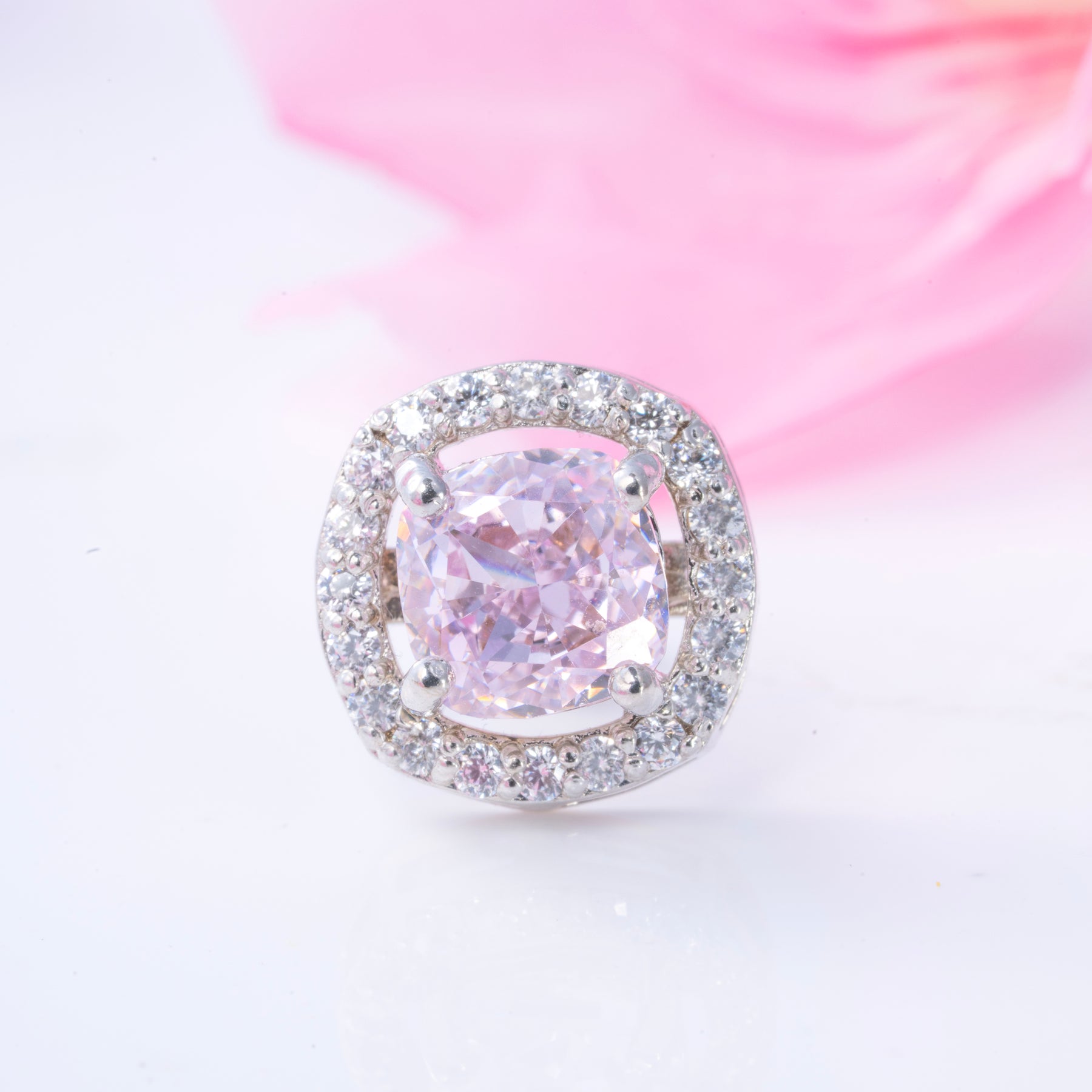 This Cushion of Rose Studs is a must-have for any jewellery collection. Meticulously designed with Cushion cut Rose Quartz and CZ stones, these studs offer a delicate and elegant touch to any outfit. Experience the natural beauty of Rose Quartz and the sparkle of CZ stones with these stunning stud earrings.