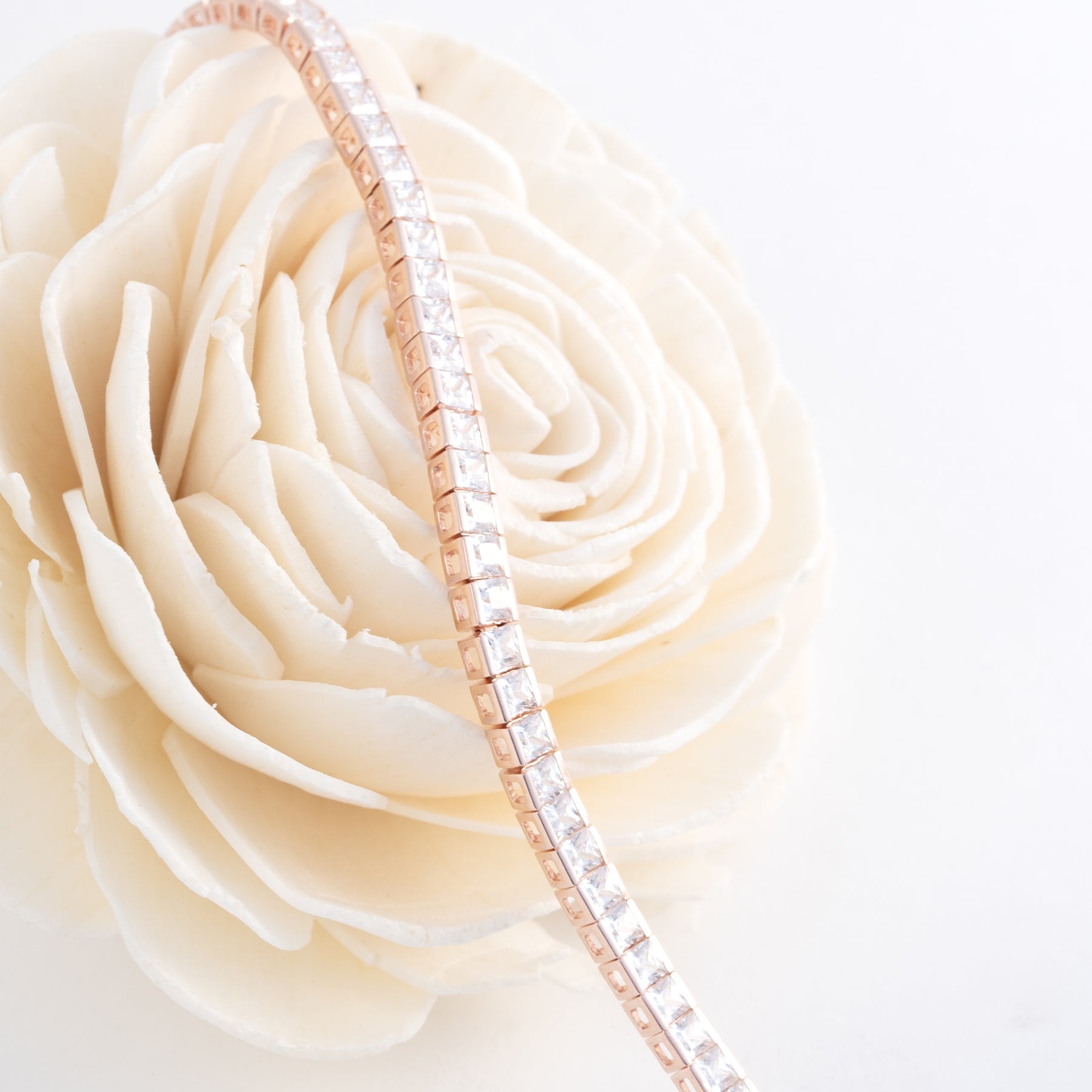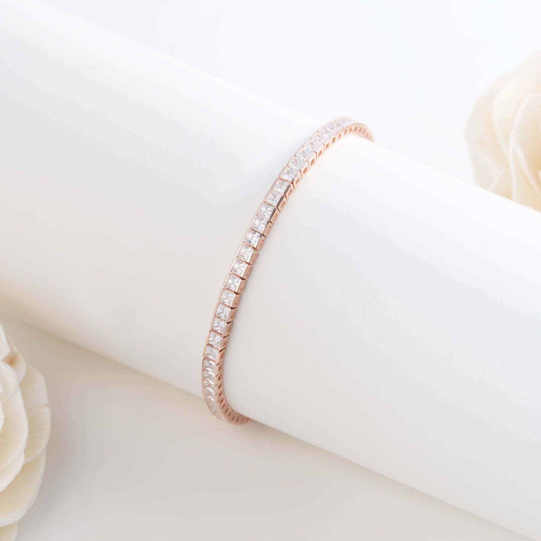 This Glitter Line Bracelet features meticulously set Cubic Zirconia stones that catch the light with every movement, delivering a refined sparkle. Expertly crafted to balance elegance and durability, it offers a versatile accessory suitable for both formal occasions and everyday wear. The precise arrangement of CZ stones enhances its shimmer, adding subtle sophistication to your wrist.