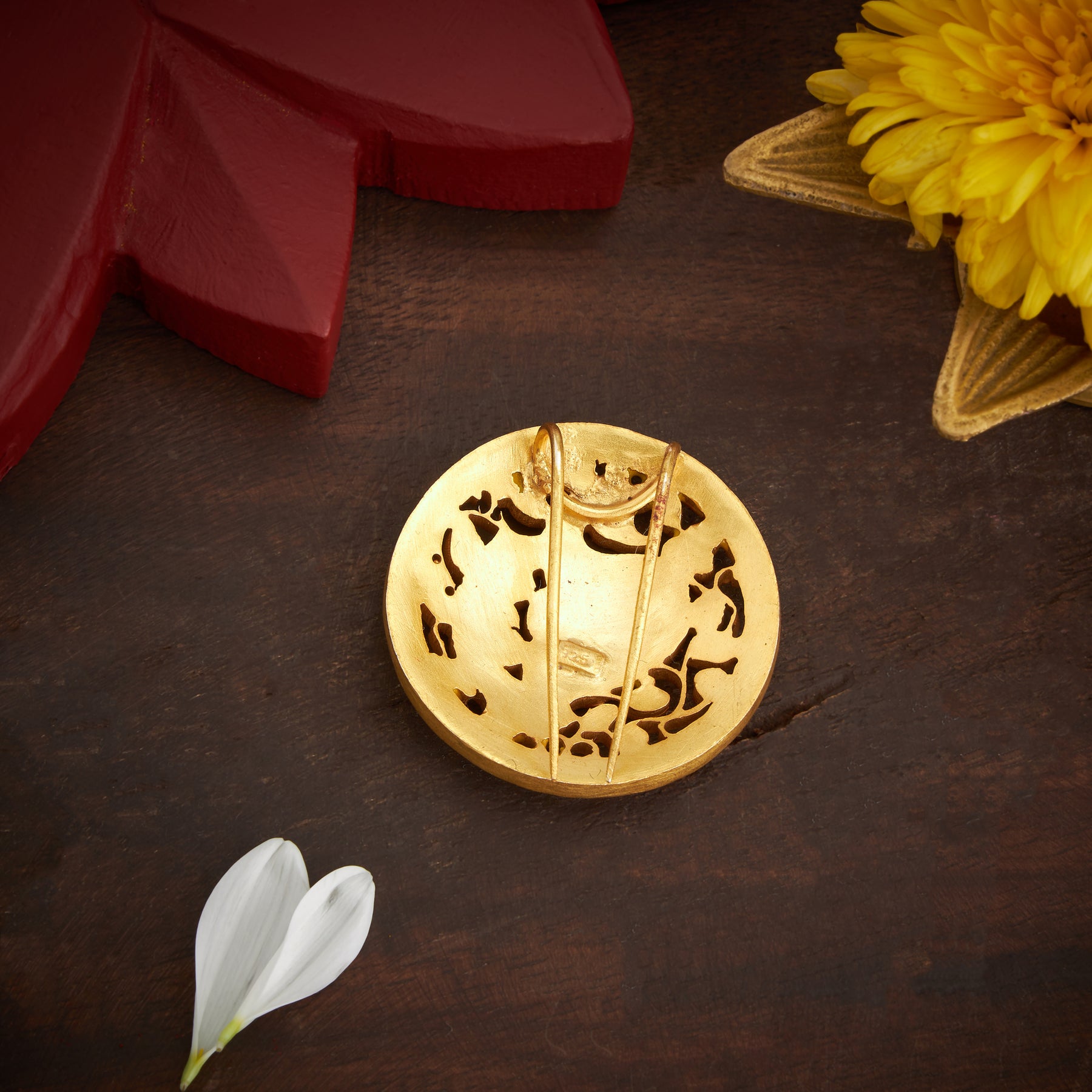 The Morarang Hair Brooch is crafted with exquisite Peacock and Leaf Motifs, elegantly adorned with traditional Kundan stones. This piece blends intricate artistry with timeless design, making it an ideal accessory to enhance your hairstyle with a touch of cultural sophistication and refined beauty.